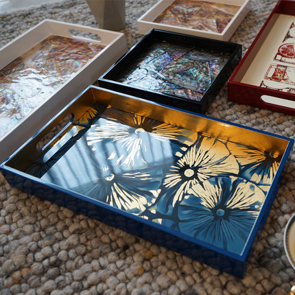 新品欧式木漆长方形托盘果盘茶y盘家居收纳餐厅样板间软装饰品礼