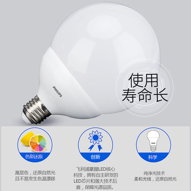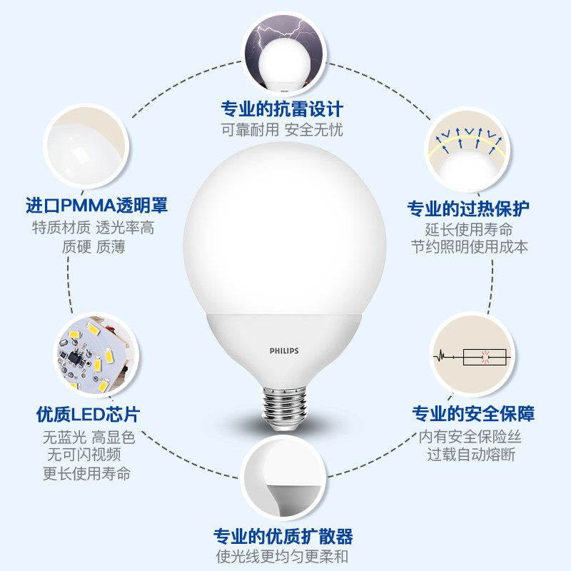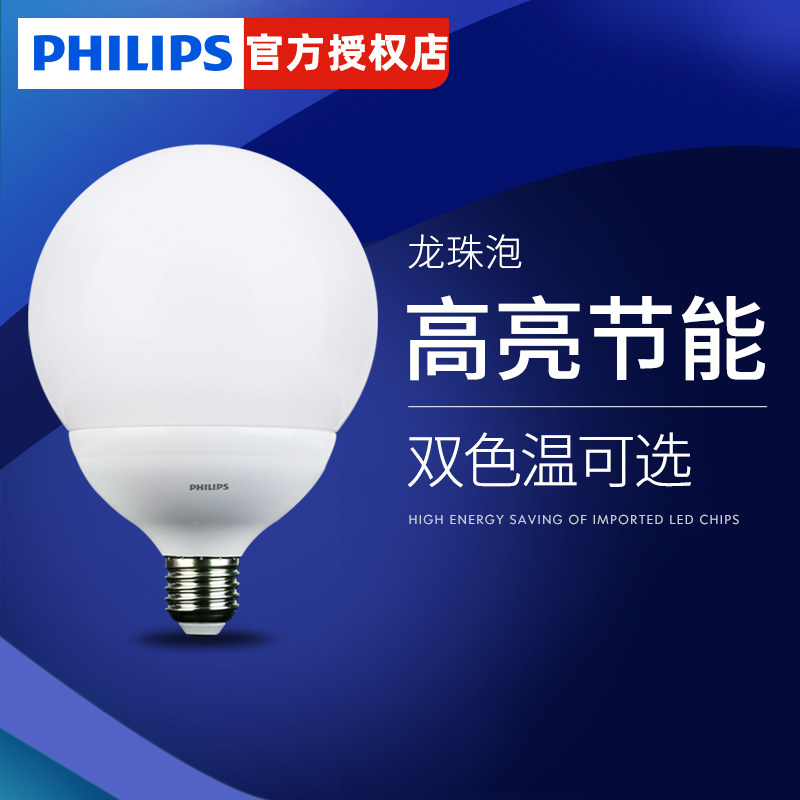 飞利浦LED柔光灯泡e27螺口节能灯家用龙珠泡球泡餐厅吊灯超亮护眼
