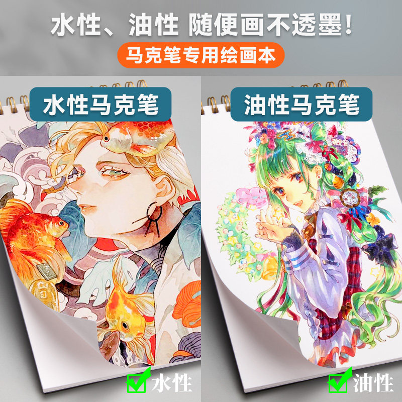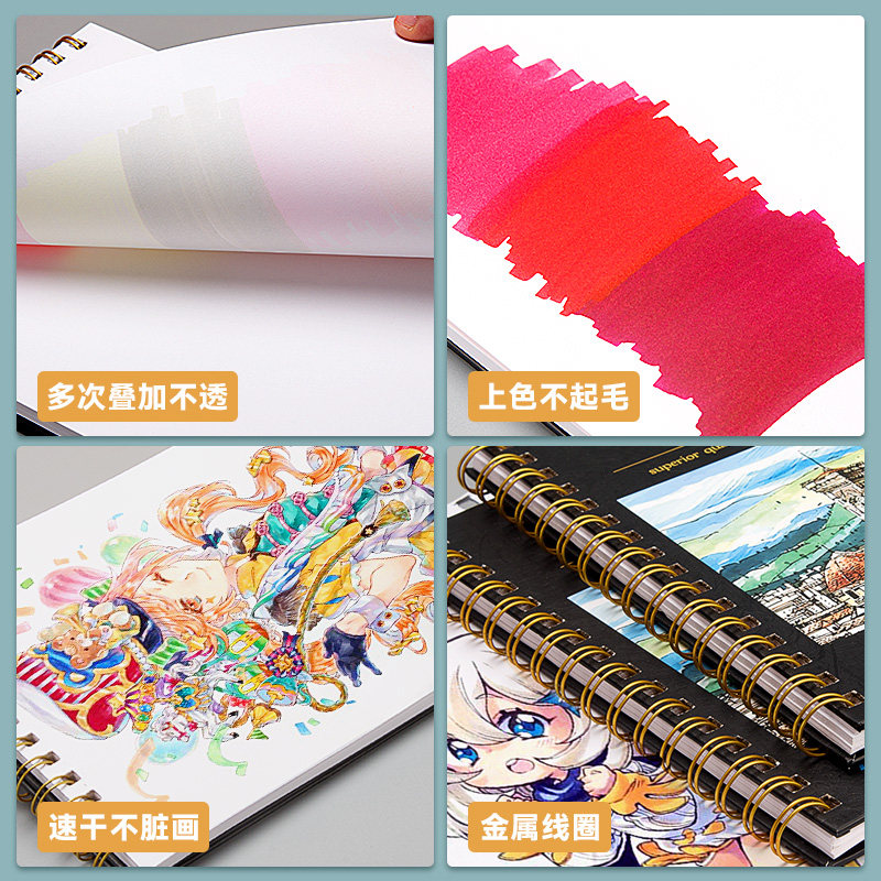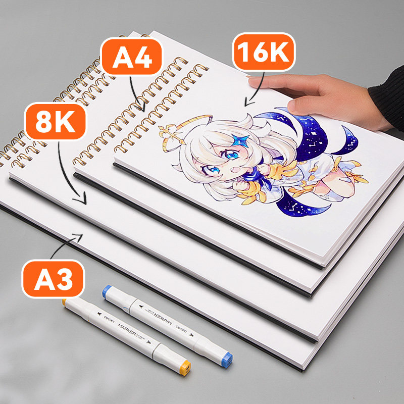 元浩A4马克笔专用绘画本线圈8K动漫马克本16K儿童小学生一年级画画本子空白A3美术生速写成年漫画专业手绘本