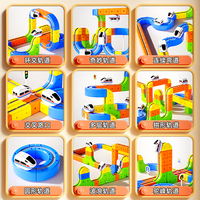 澳梦星2025新款积木轨道车魔幻百变儿童男孩益智生日礼物拼装玩具