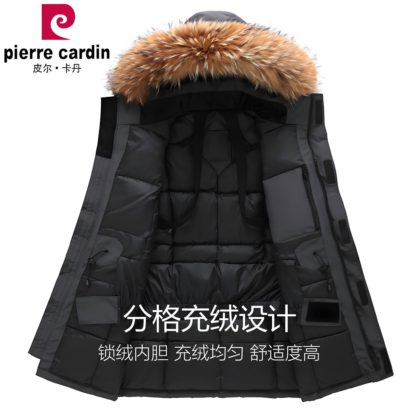皮尔卡丹高端羽绒服男女极寒工装冲锋衣冬季大毛领加厚情侣派克服