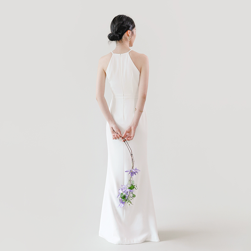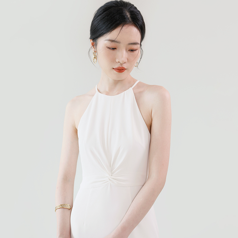 TANSSHOP礼服裙女腰部扭结白色挂脖连衣裙鱼尾长裙A