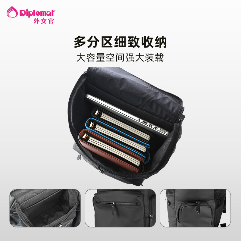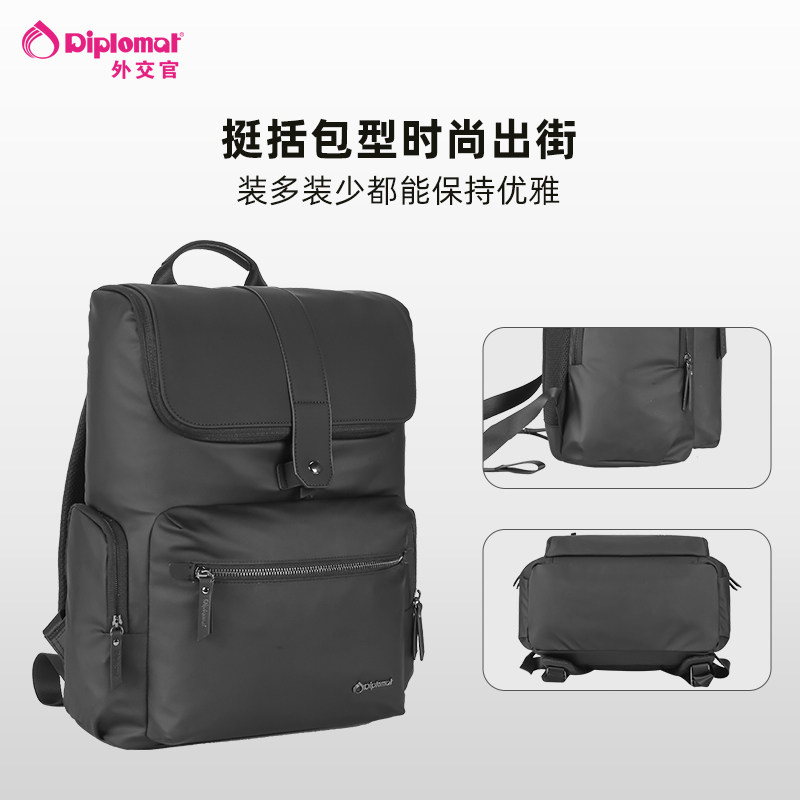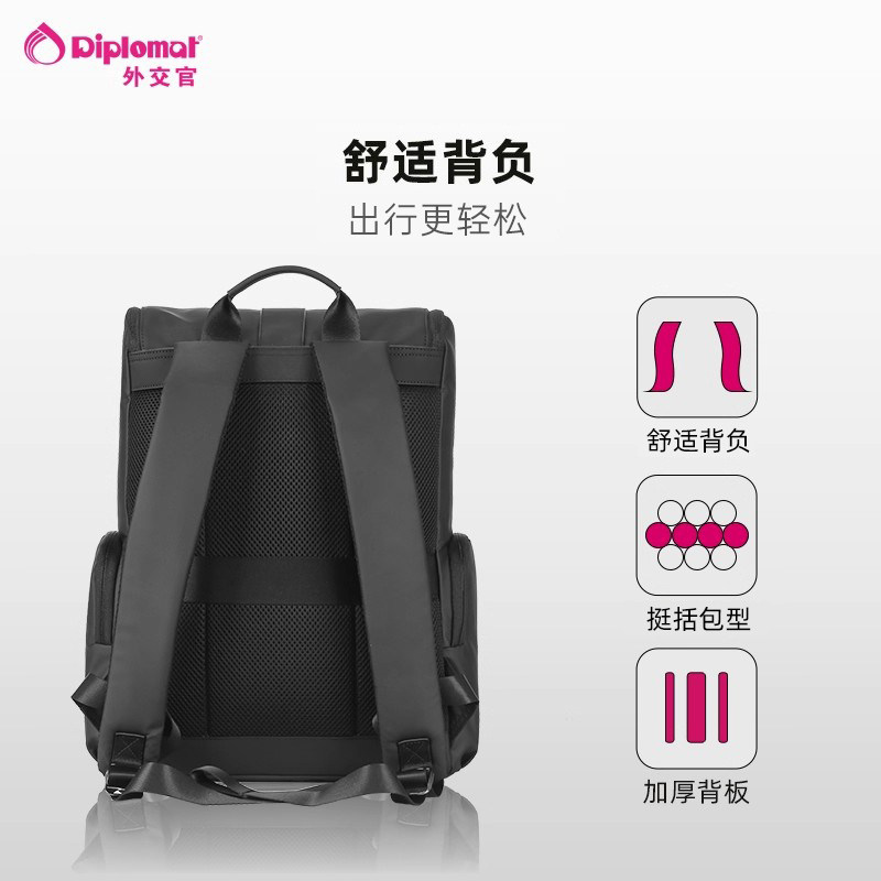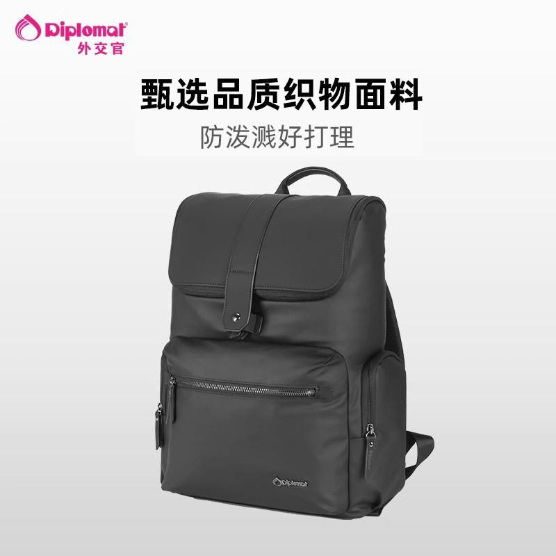 diplomat外交官双肩包男士商务通勤电脑包大容量黑色旅行轻便背包