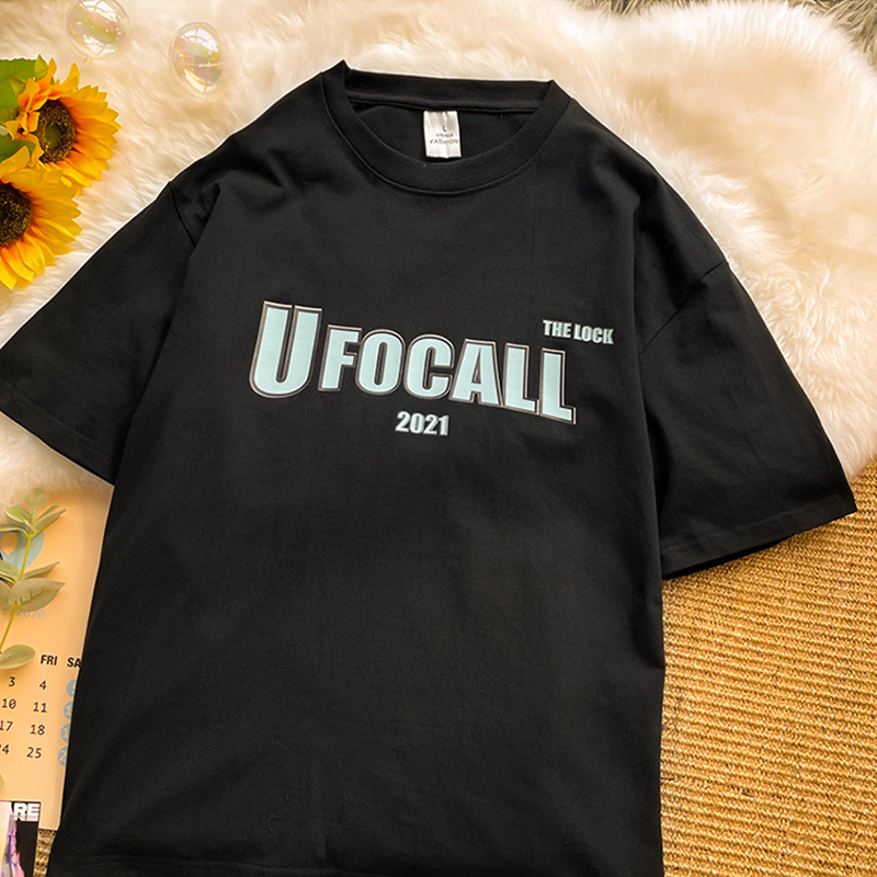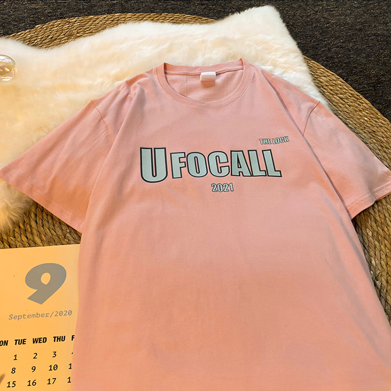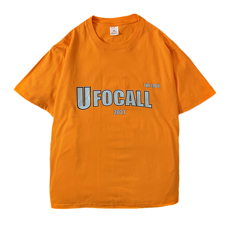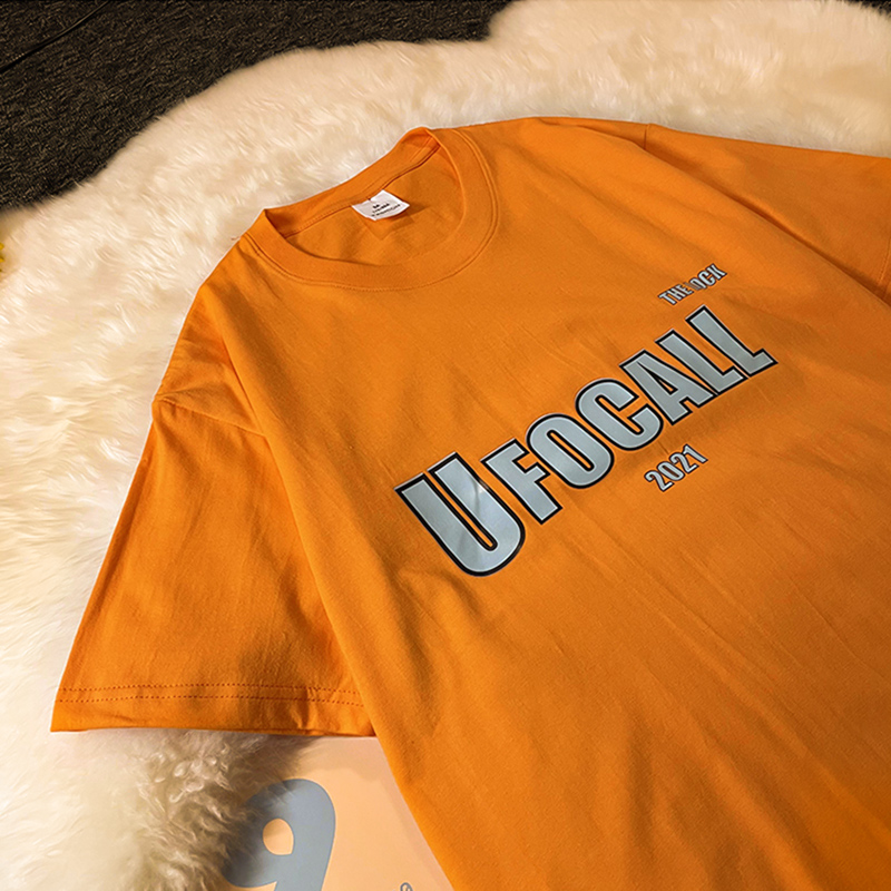 夏日橙色短袖t恤男士美式街头半袖奶甜上衣夏青少年痞帅文艺体恤