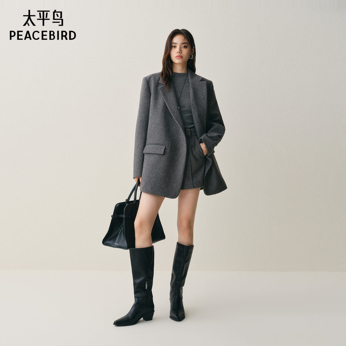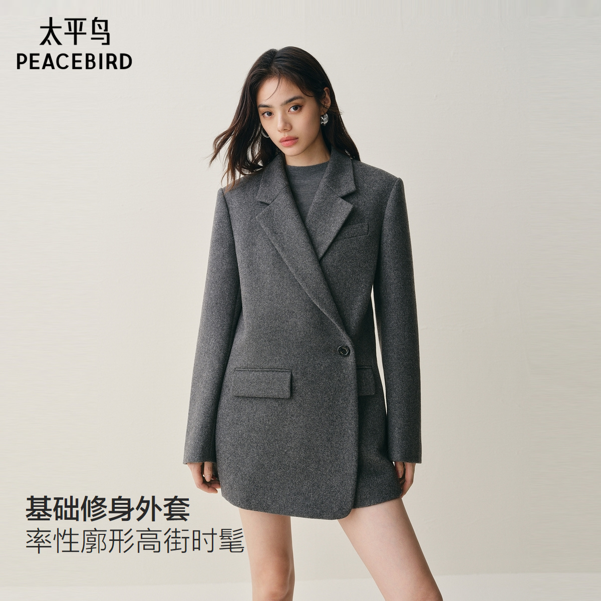 太平鸟甄毛系列斜门襟西装短大衣25年新款立体廓形大衣外套女