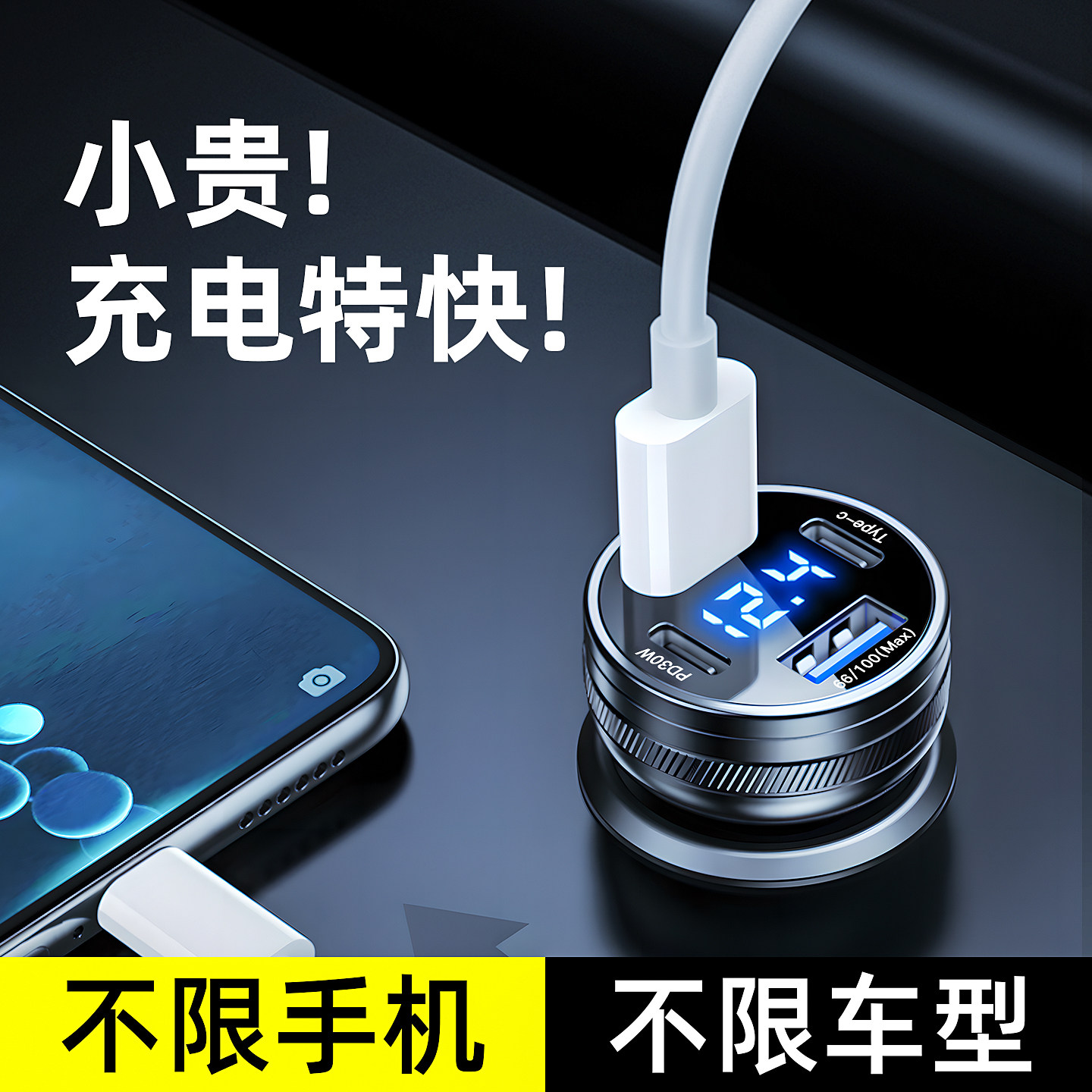 车载充电器超级快充汽车用快速usb扩展接口车充转换插头点烟插座