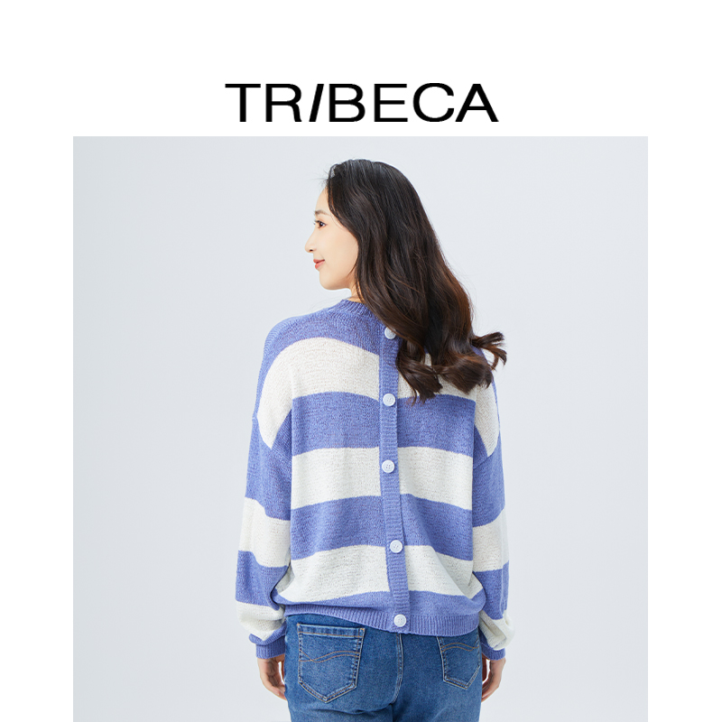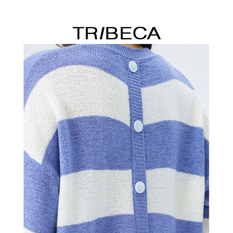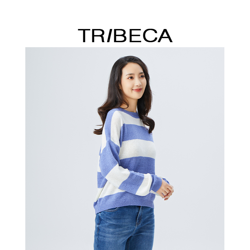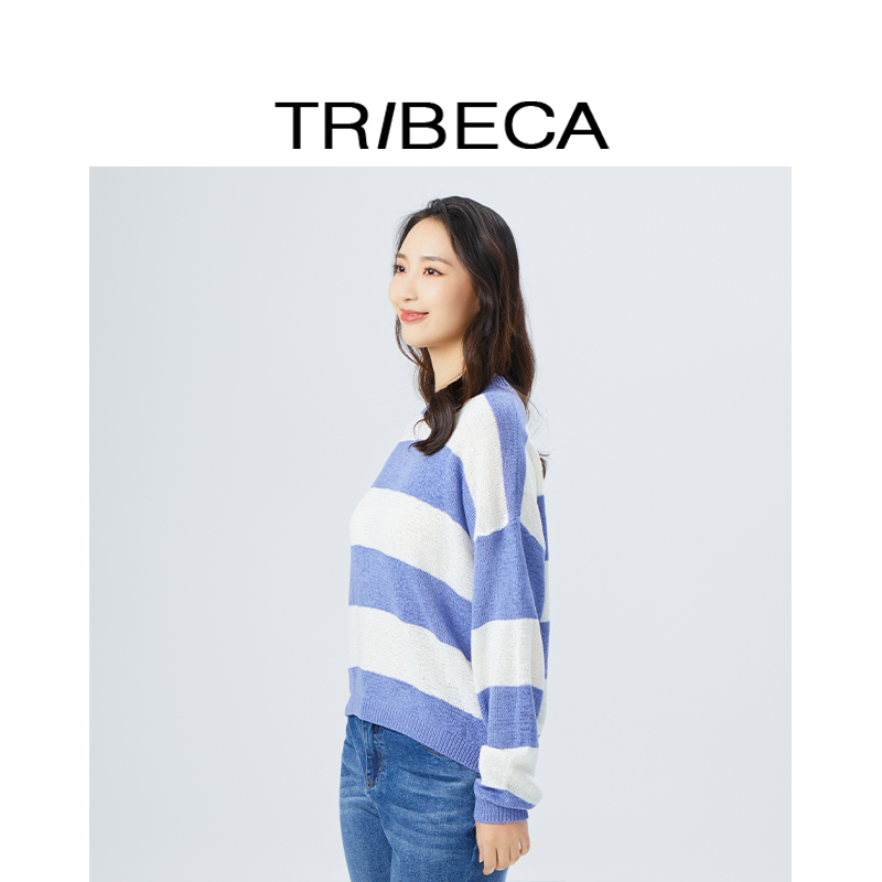 TRIBECA翠贝卡商场同款春百搭拼色长袖毛针织衫条纹上衣女毛衣