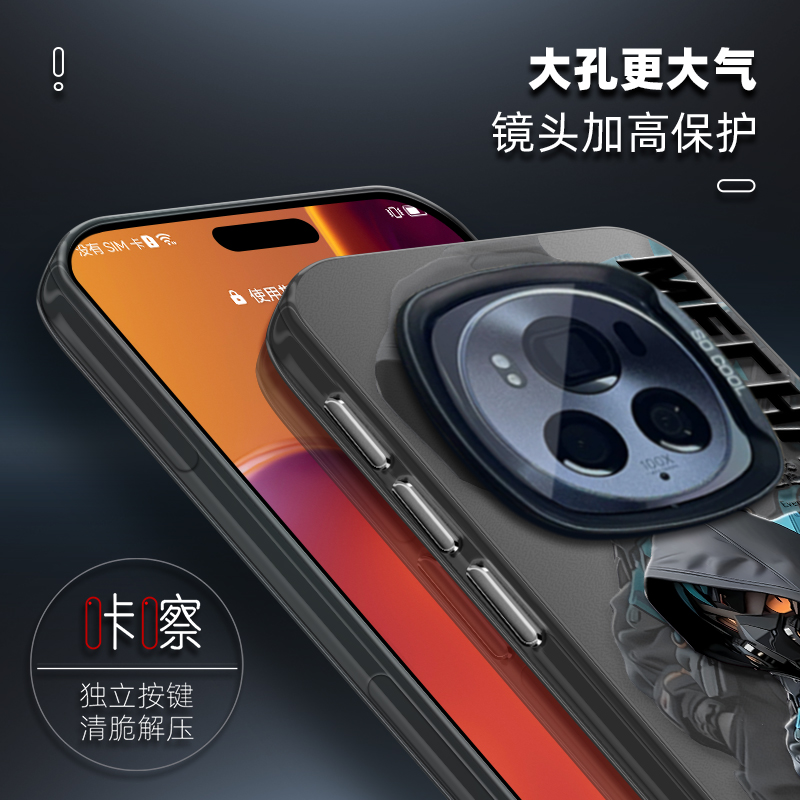 机甲男孩手机壳适用荣耀Magic8Pro彩银磨砂硬壳Magic6新款5男小众卡通高级感防摔不会撞壳时尚防摔Magic7Pro