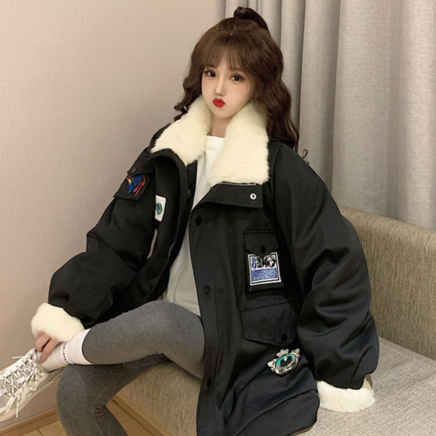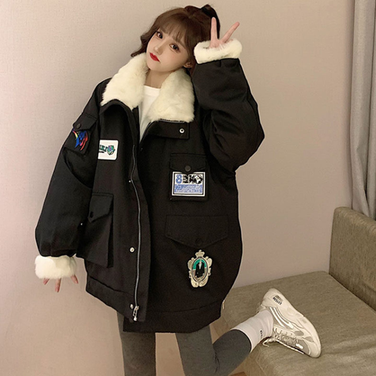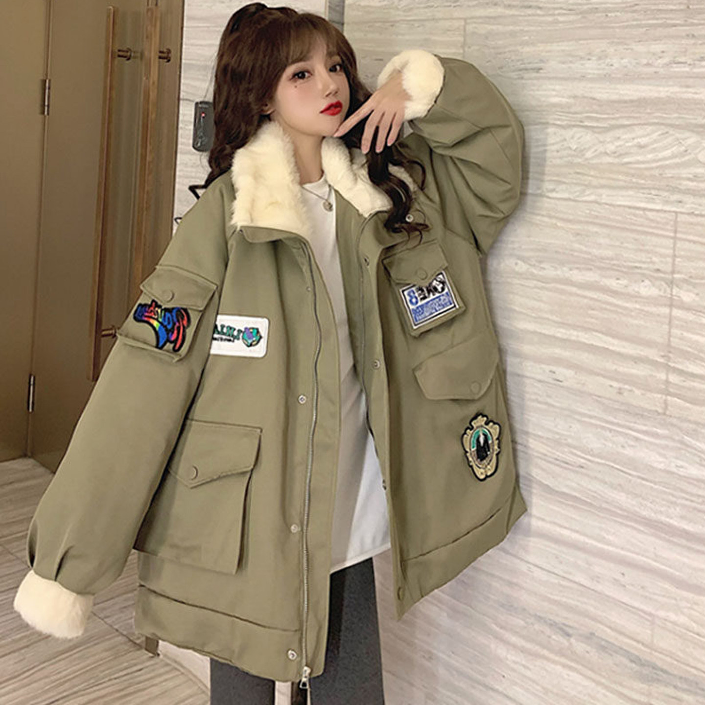 大码女装2025冬装韩版新款宽松显瘦毛领加厚中长款工装厚外套棉衣