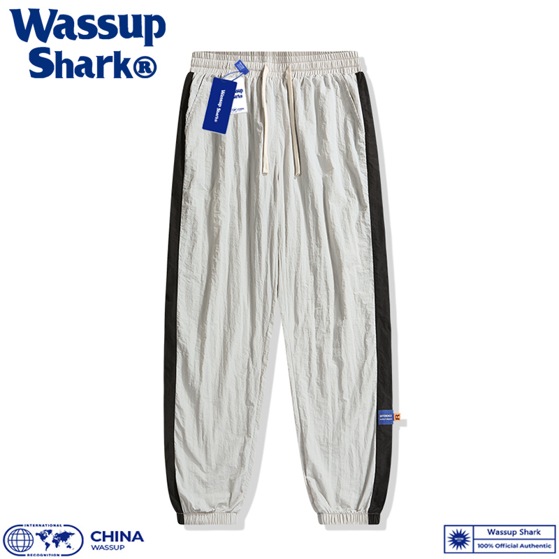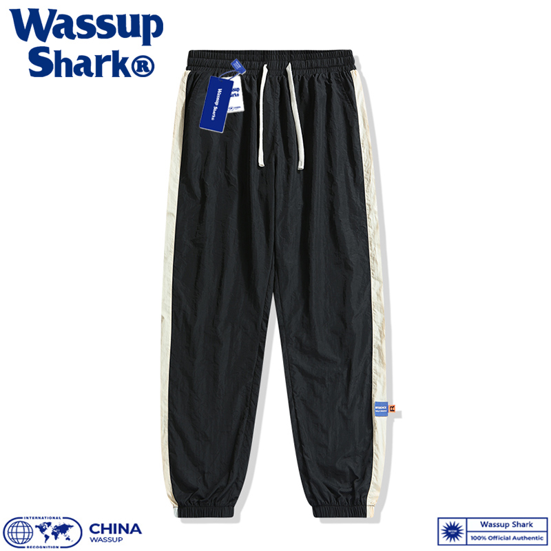 Wassup Shark夏季冰丝束脚裤男速干九分裤宽松大码冰感运动长裤薄