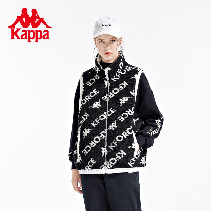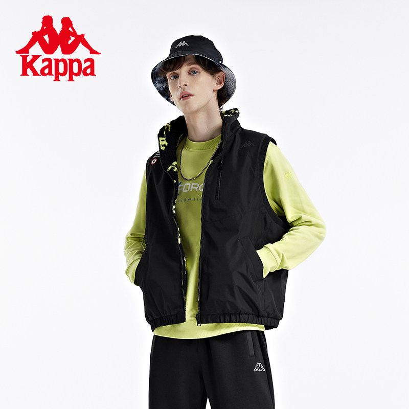 Kappa卡帕加厚马甲情侣男女两面穿羊羔绒背心K0BY2NN30