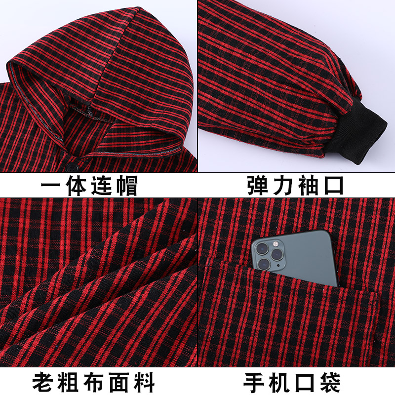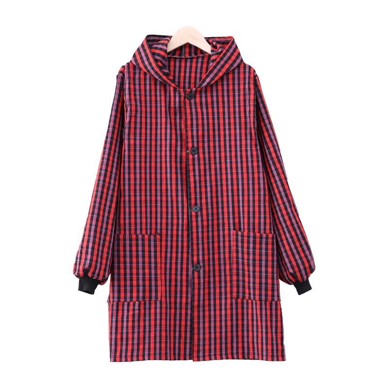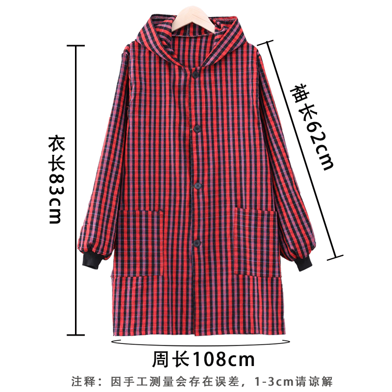时尚简约老粗布罩衣大褂围裙连帽防污防尘成人时尚工作服可外穿