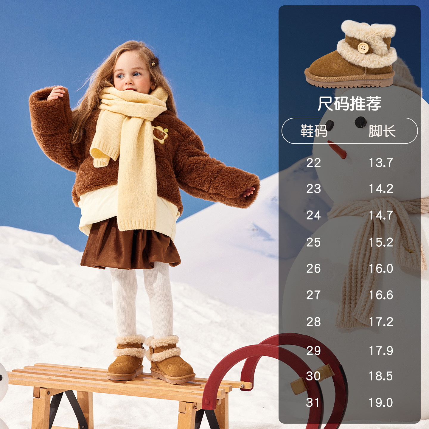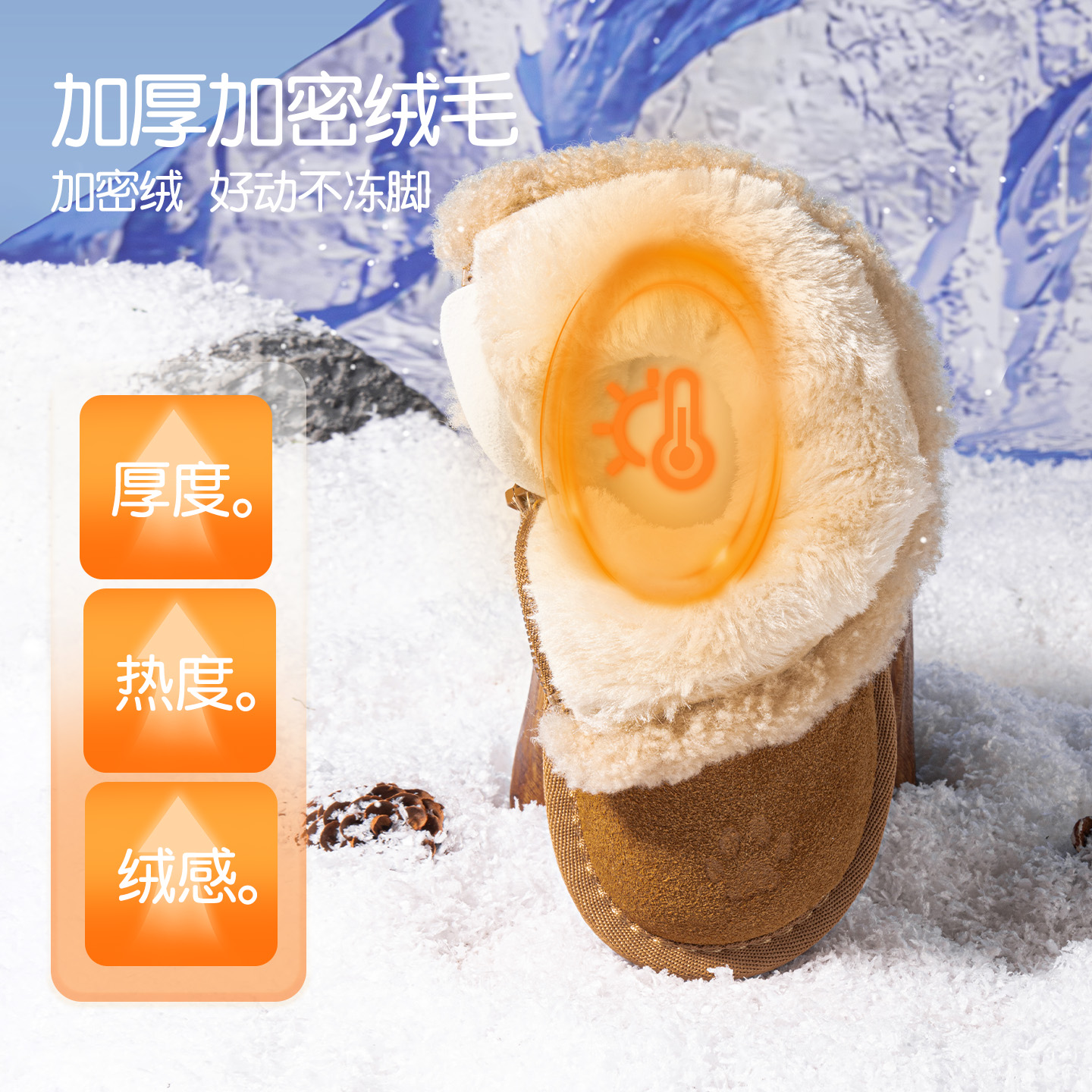 英贝米尼女宝宝雪地靴2025新款冬季加绒儿童保暖鞋子软底女童棉鞋