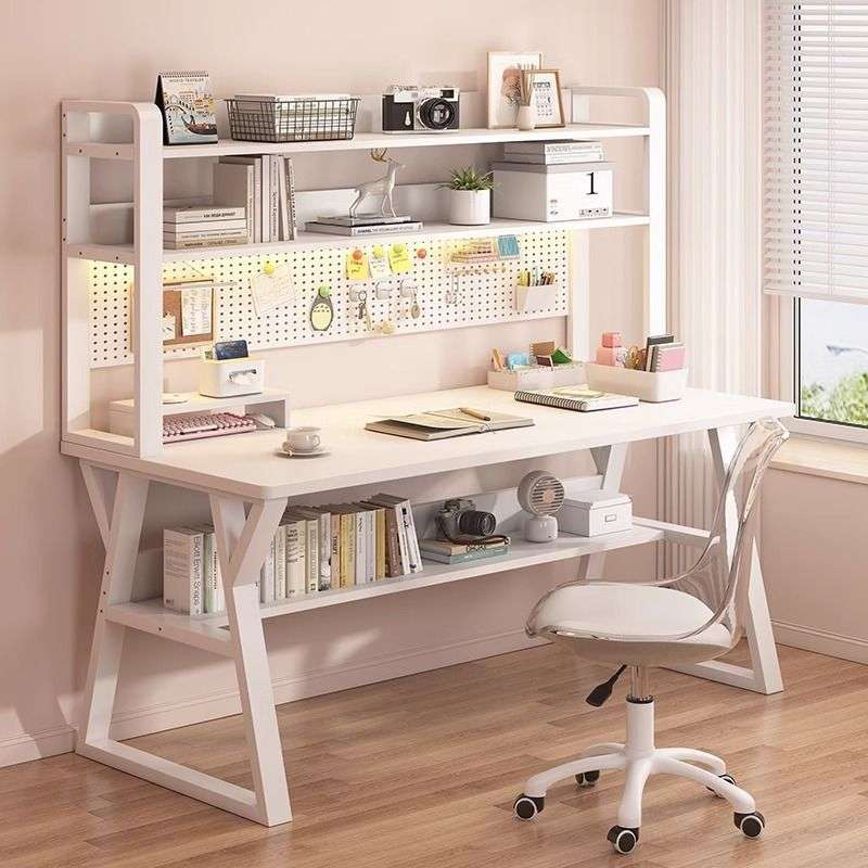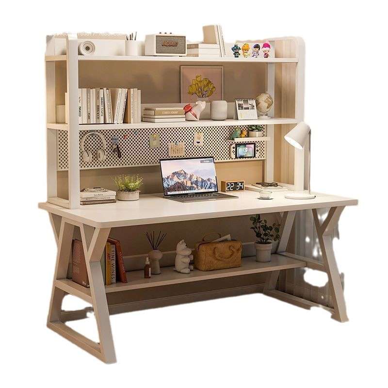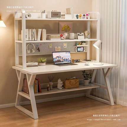 电脑桌家用办公桌卧室学生书桌书架一体带洞洞板简易置物学习桌子