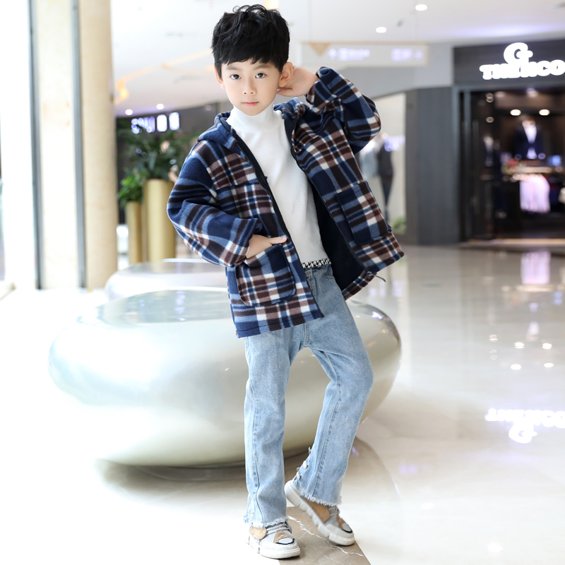 罩衣儿童秋冬季男童宝宝洋气羽绒服棉衣时尚罩衫加绒吃饭围餐衣