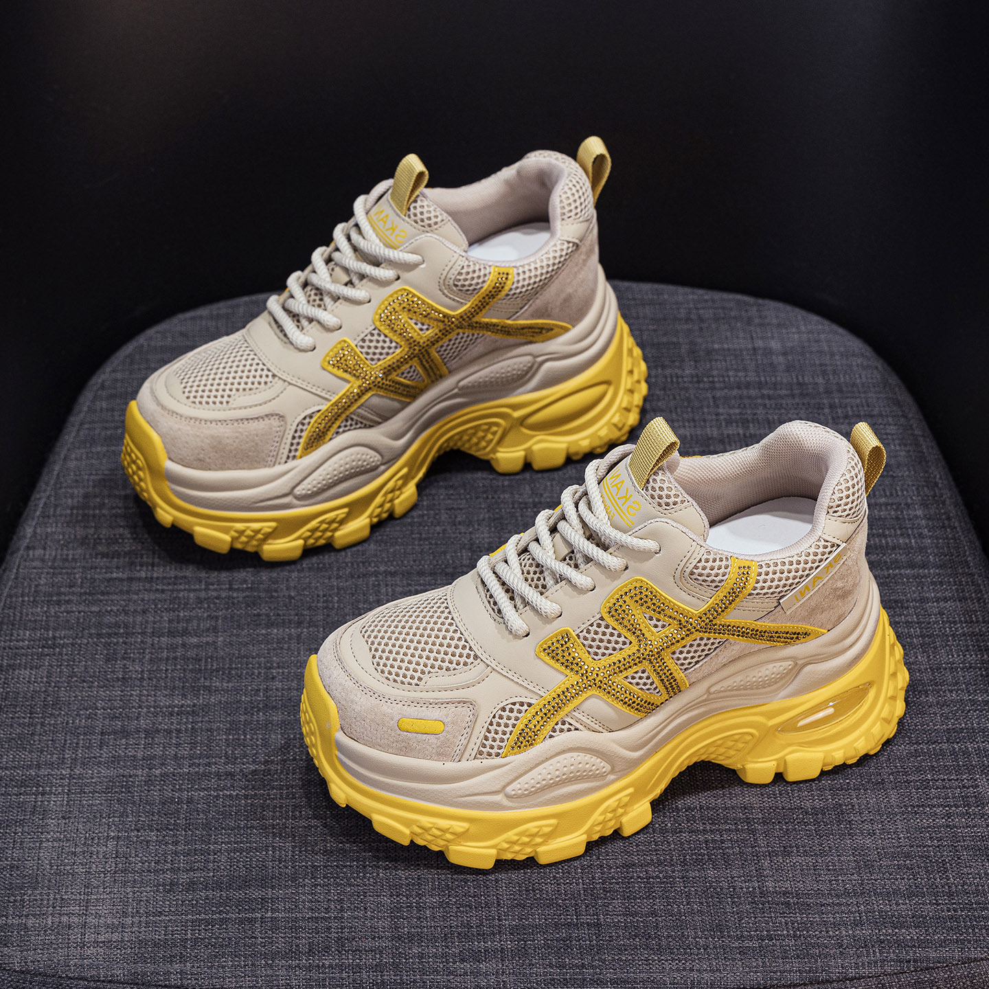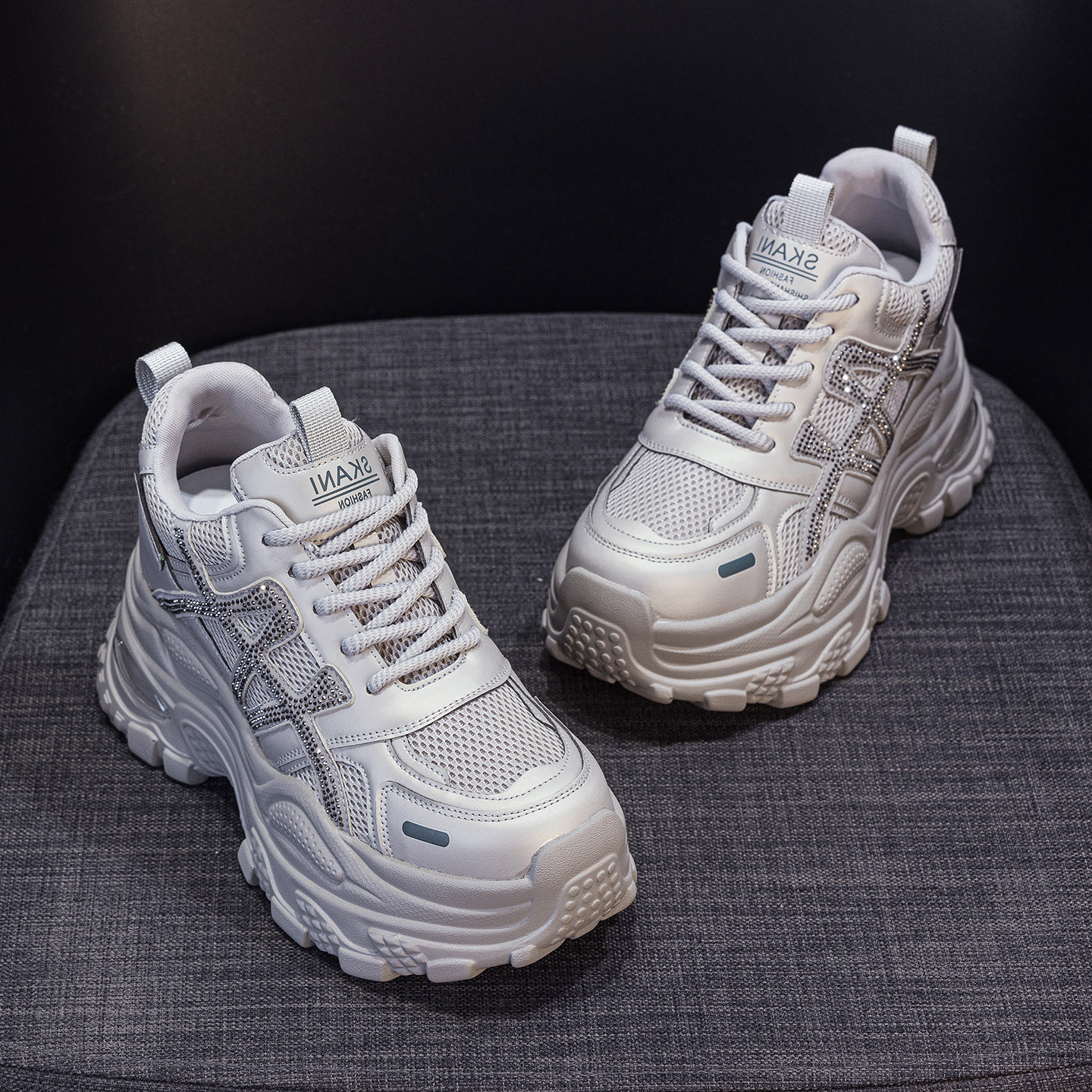 老爹鞋女内增高8CM真皮透气显脚小个子2025早秋新款松糕厚底单鞋