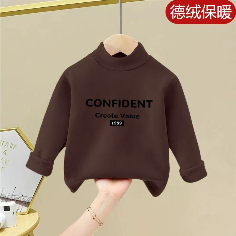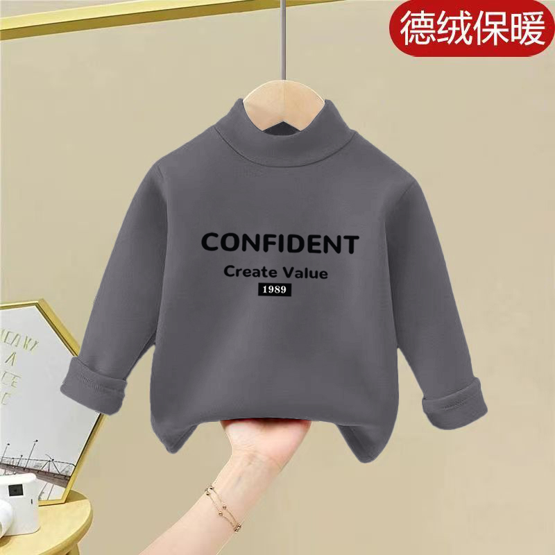 女童半高领德绒打底衫2025秋冬新款中小儿童宝宝卡通洋气印花上衣
