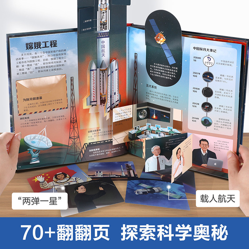嫦娥探月立体书给孩子讲中国航天系列3-4-5-6岁幼儿园嫦娥四号五号航天航空3D立体翻翻书少儿童科普百科知识全书趣味科学绘本