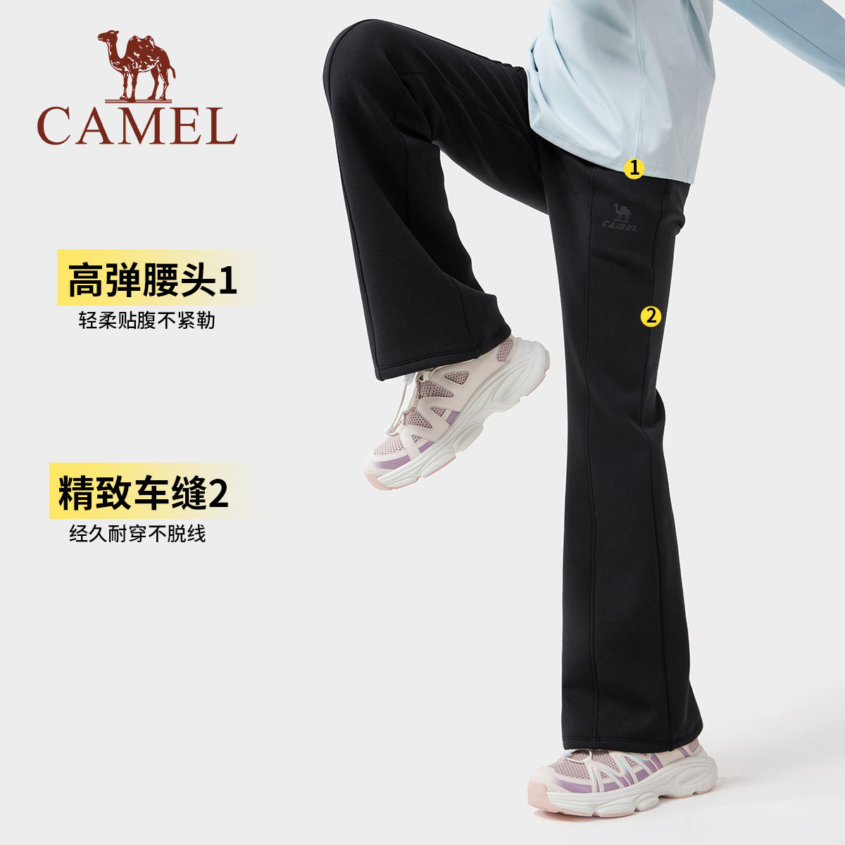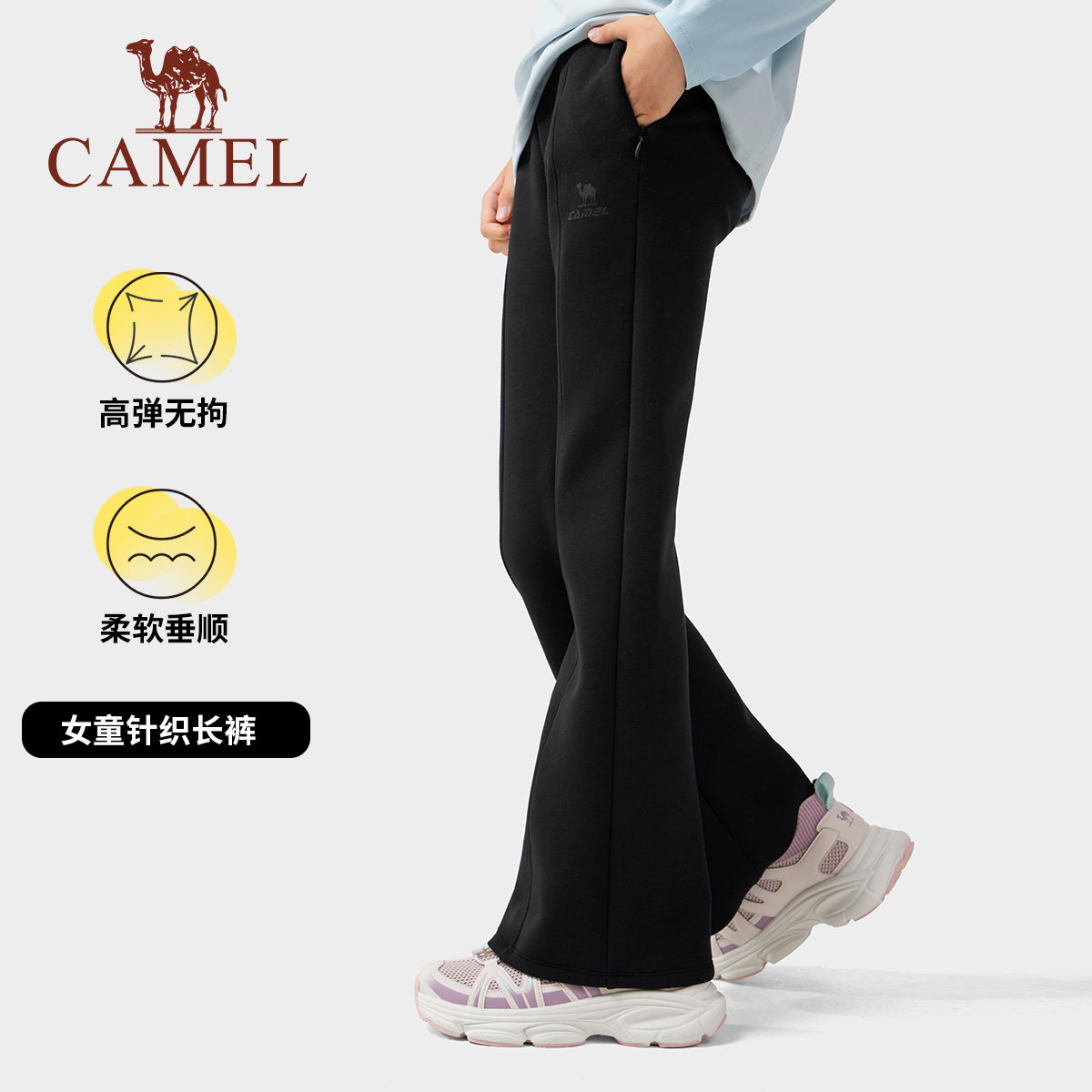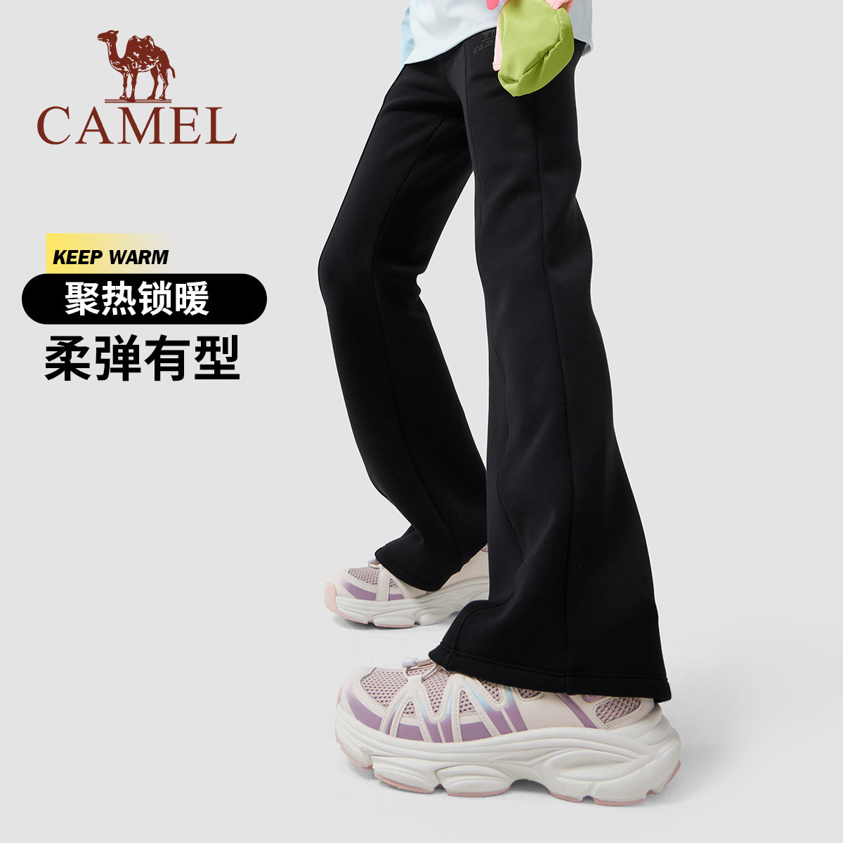 小骆驼儿童喇叭裤加绒2025新款高腰弹力显瘦女童加厚保暖瑜伽长裤