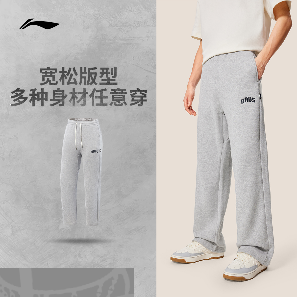 李宁宽松男刺绣卫裤运动裤