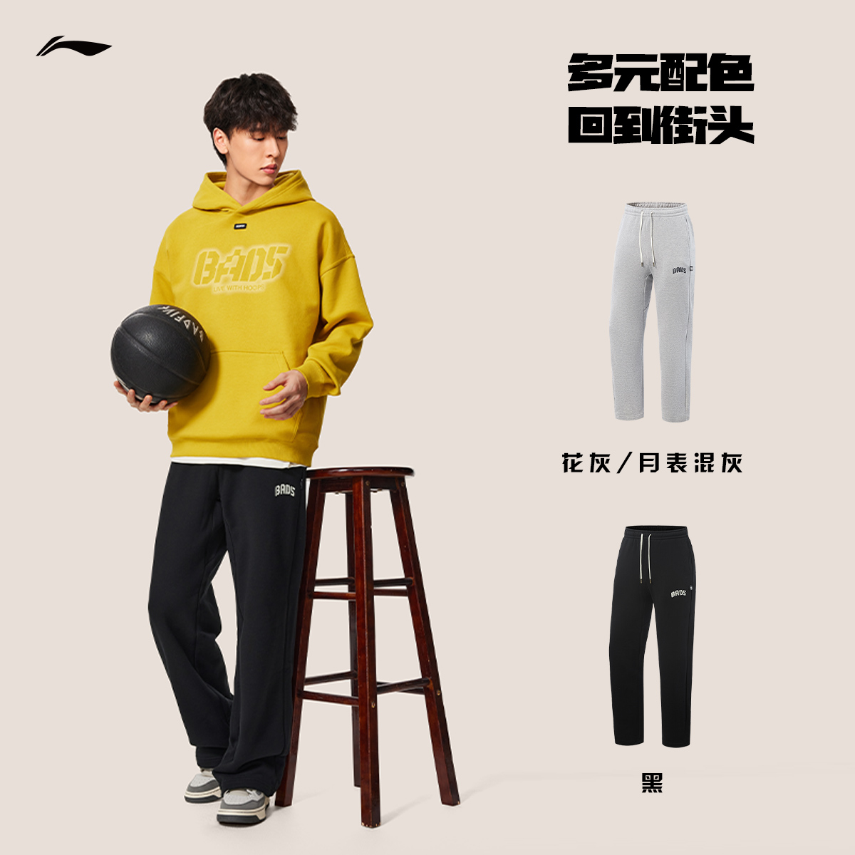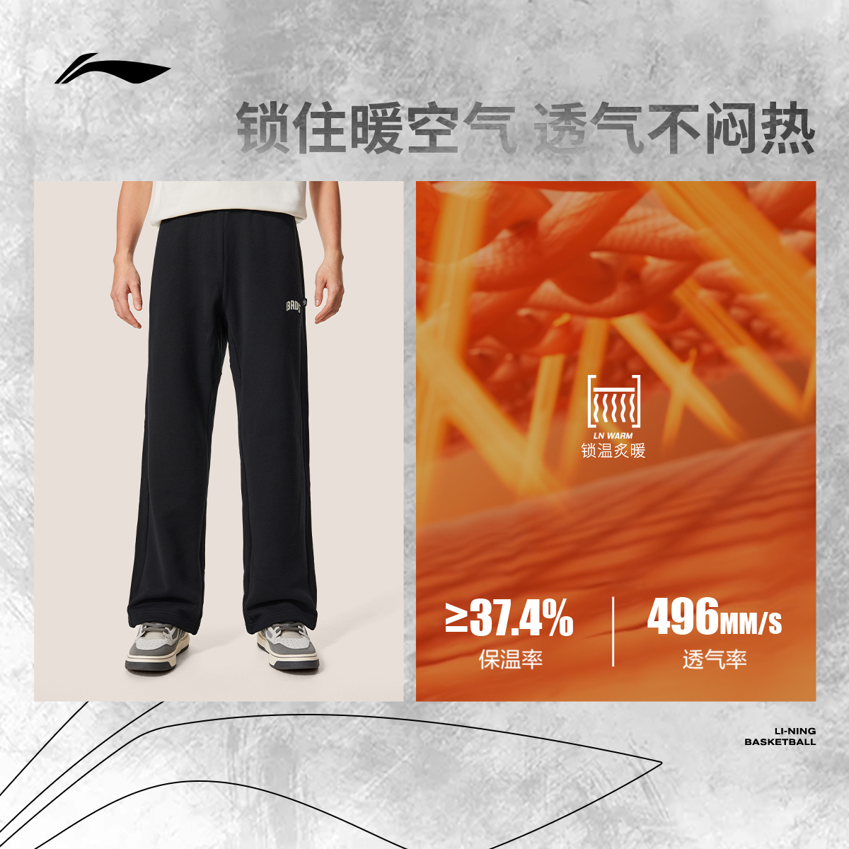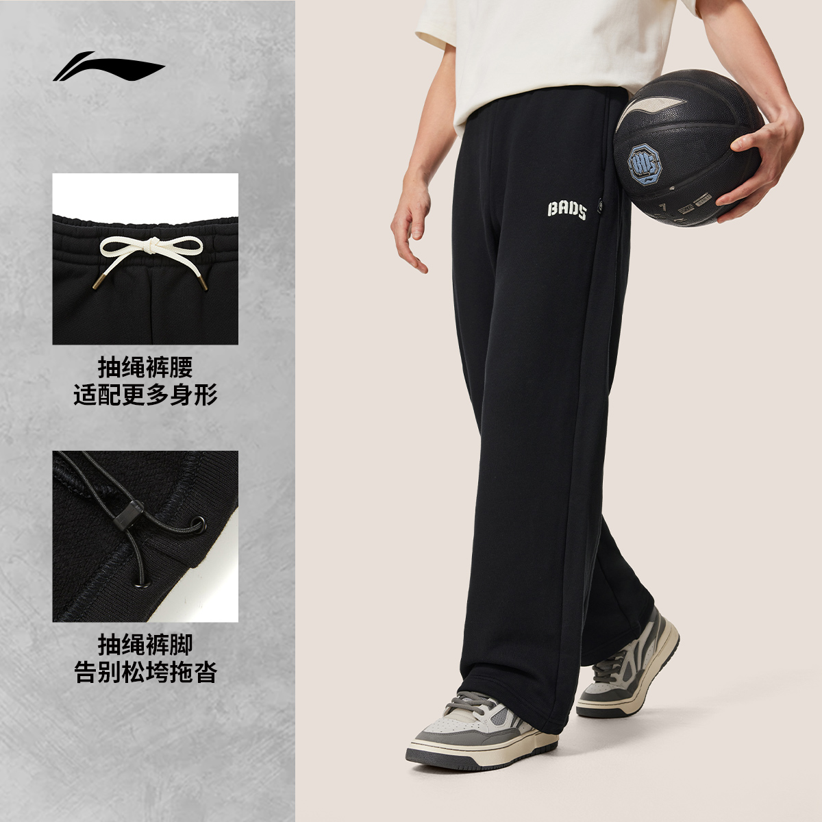 李宁反伍BADFIVE卫裤男士2025新款长裤加绒保暖男装裤子运动裤男