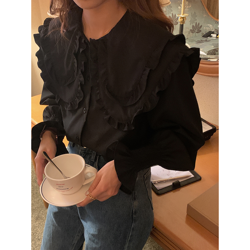 法风娃娃领复古少女公主长袖衬衫