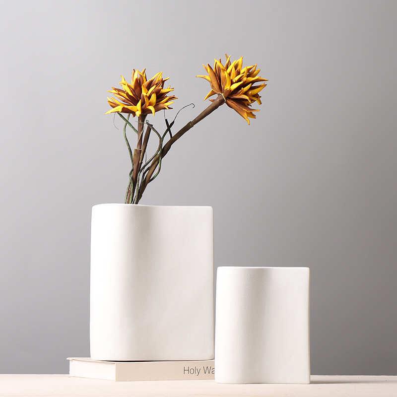 现代简约创意扁瓶样板房桌面插花装饰品书形陶瓷花瓶摆件磨砂白色