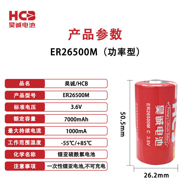 HCB昊诚ER26500M水表燃气表流量计PLC数控GPS定位器3.6V锂电池C型