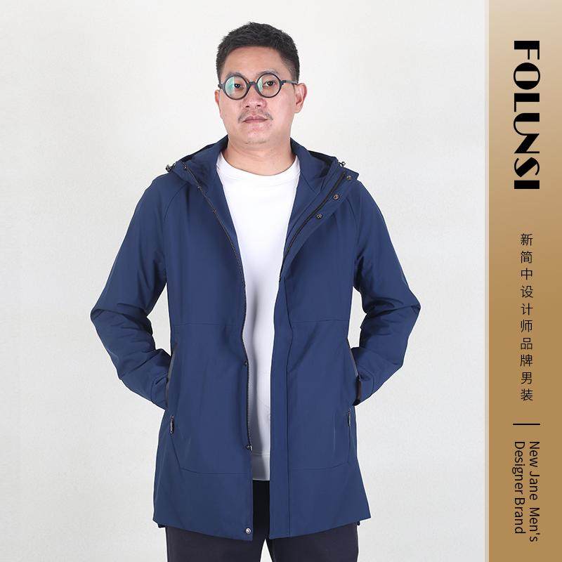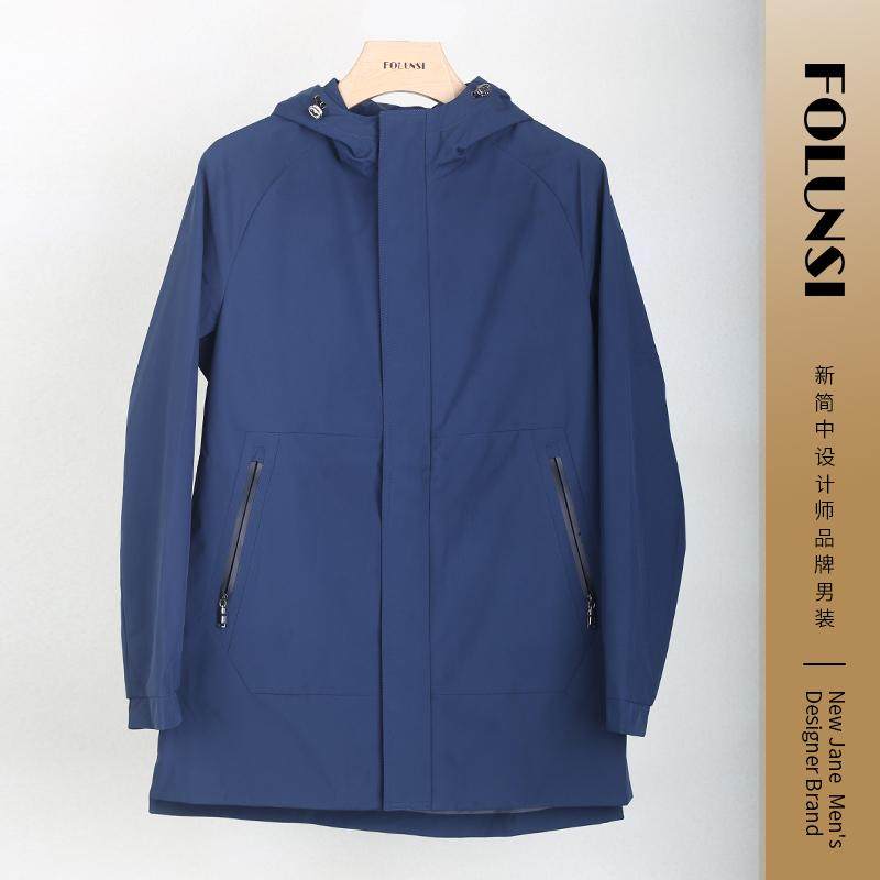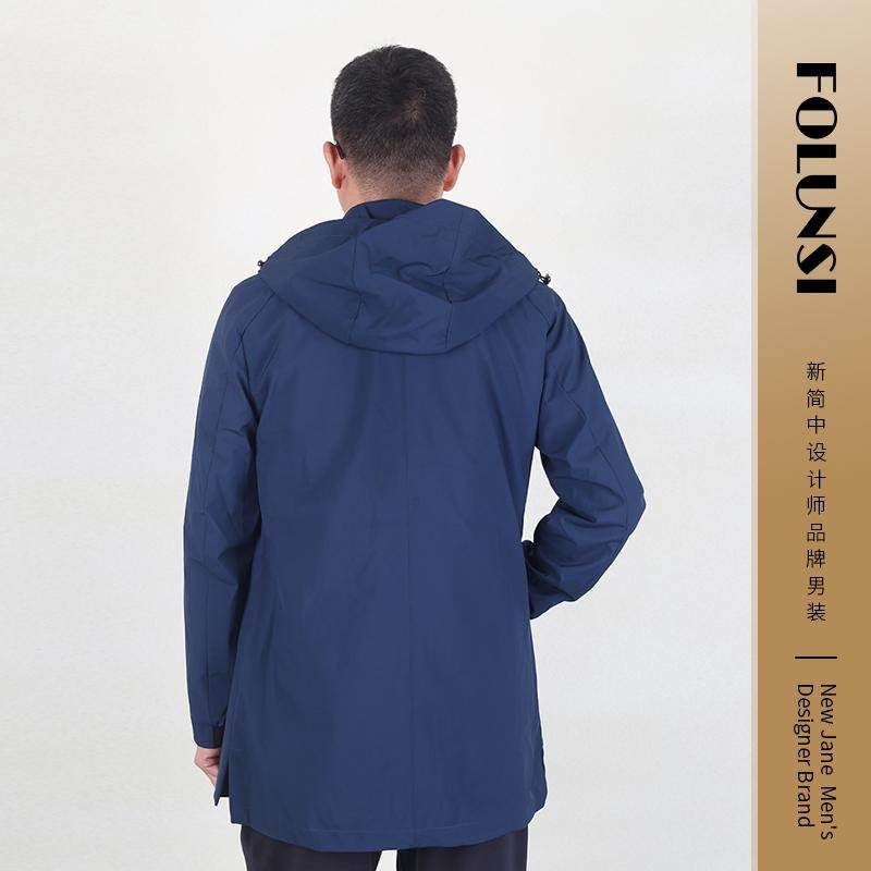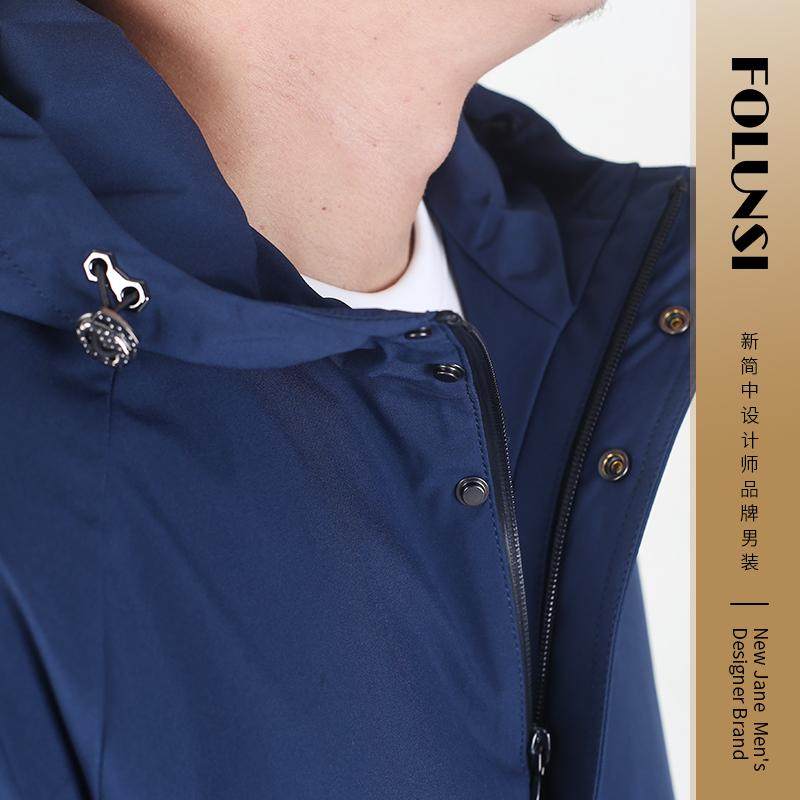 佛伦斯FOLUNSI男装时尚休闲连帽中长款拉链长袖风衣