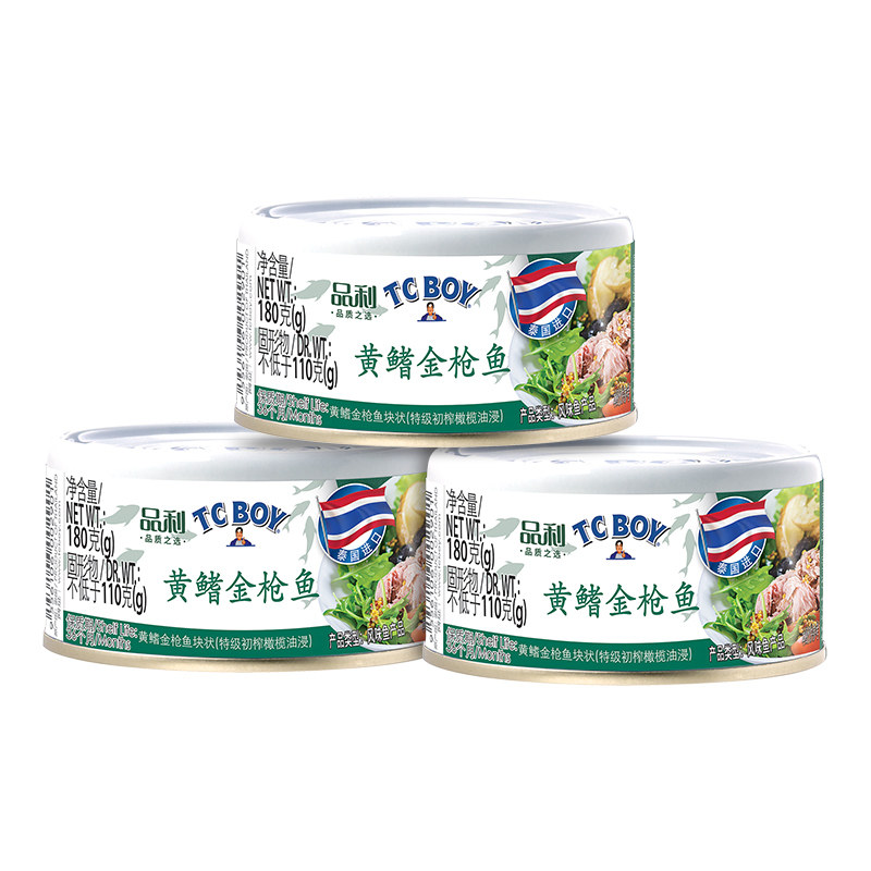 TCBOY小胖子180g*3罐金枪鱼橄榄油浸罐头海洋美味便捷备餐无色素