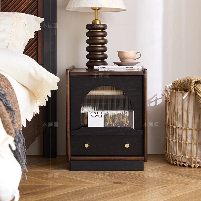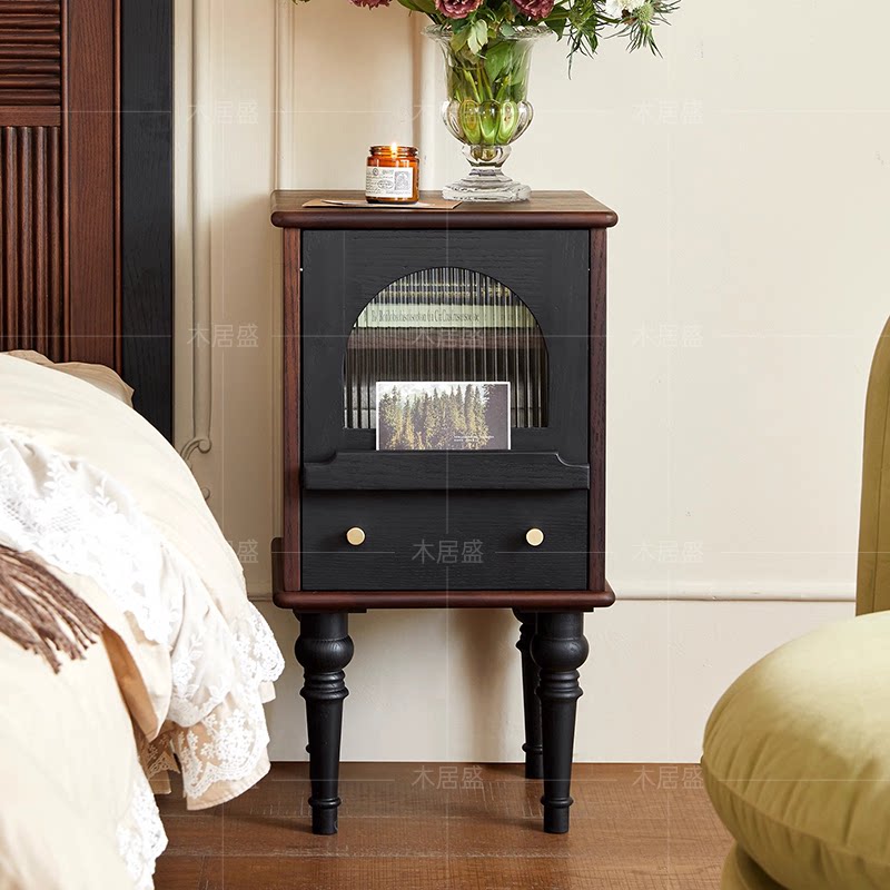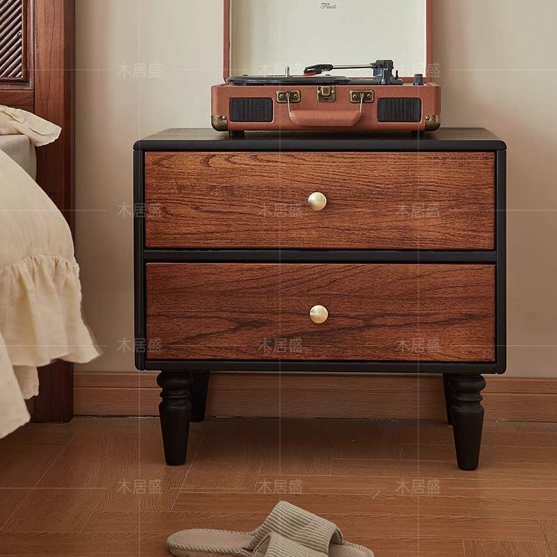 【法式复古风请进】中古风卧室实木床头柜床边收纳柜抽屉式小柜子