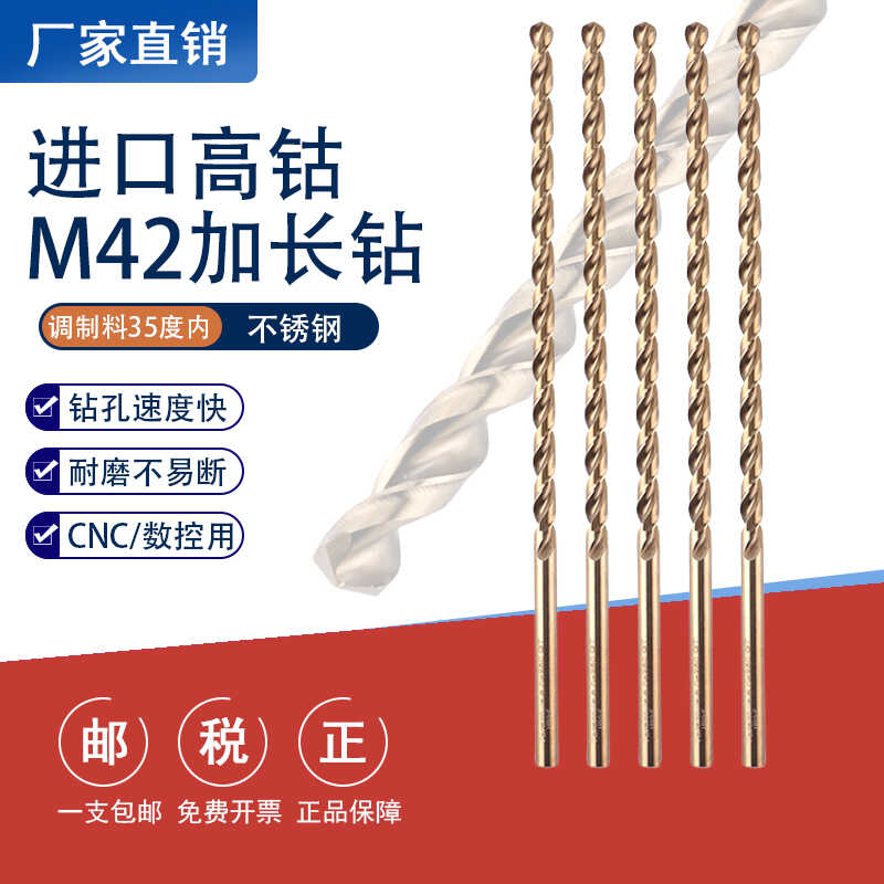 M42高钴加长直柄麻花钻头CNC高硬度钻不锈钢专用深孔合金转头超长