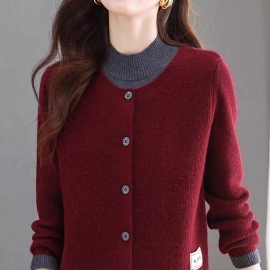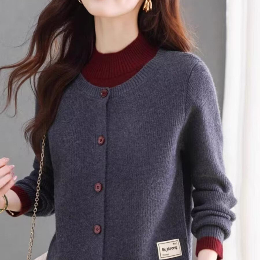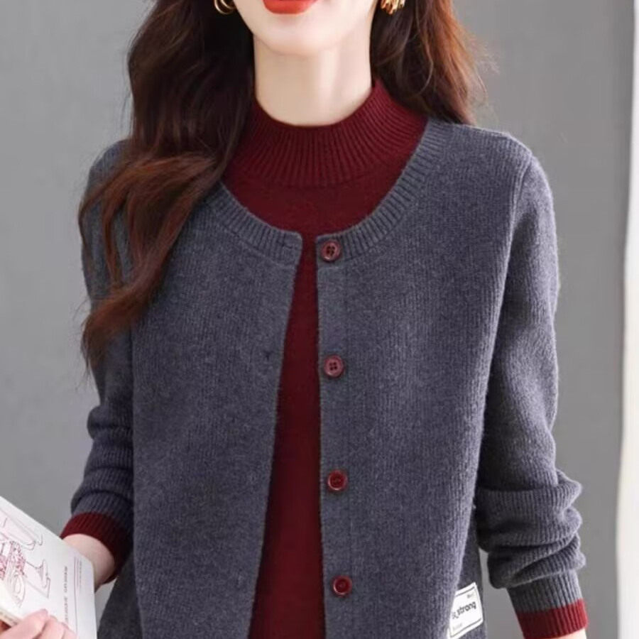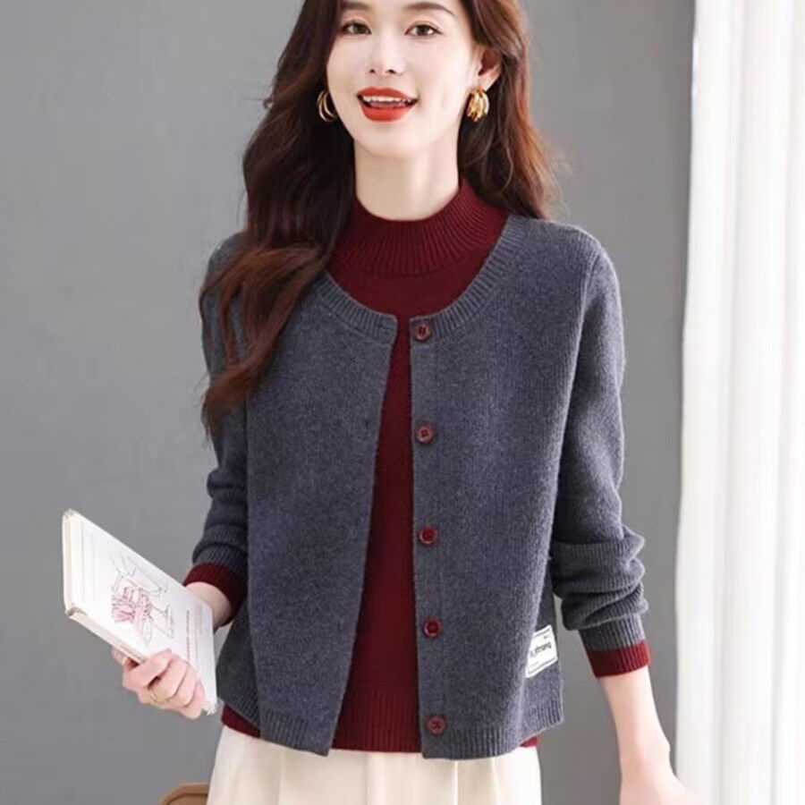 毛衣开衫女2025春款外套时尚假两件短款上衣韩系外穿内搭针织衫女
