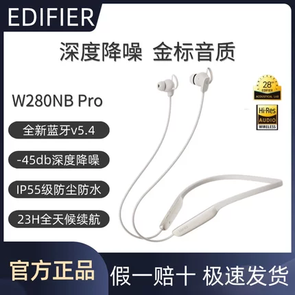 Edifier/漫步者 W280NB Pro主动降噪无线蓝牙耳机颈挂脖式入耳式