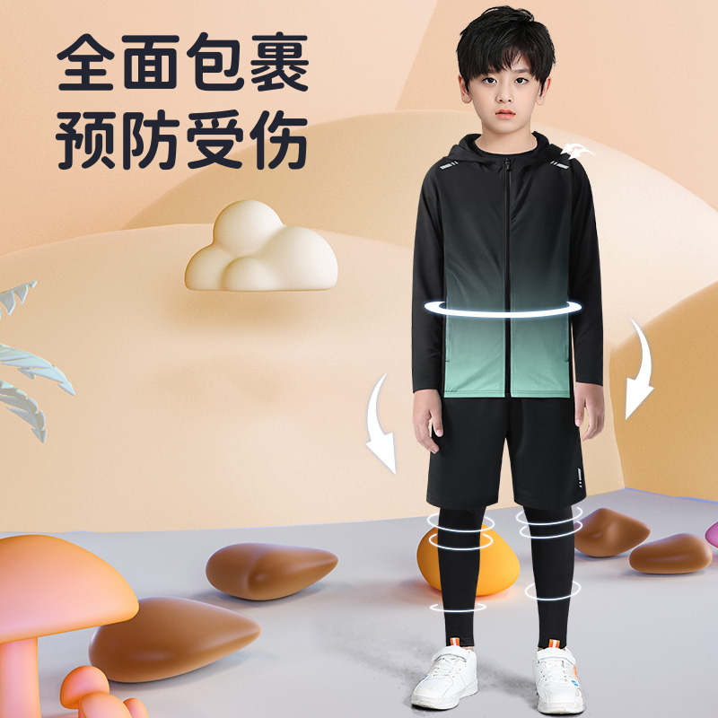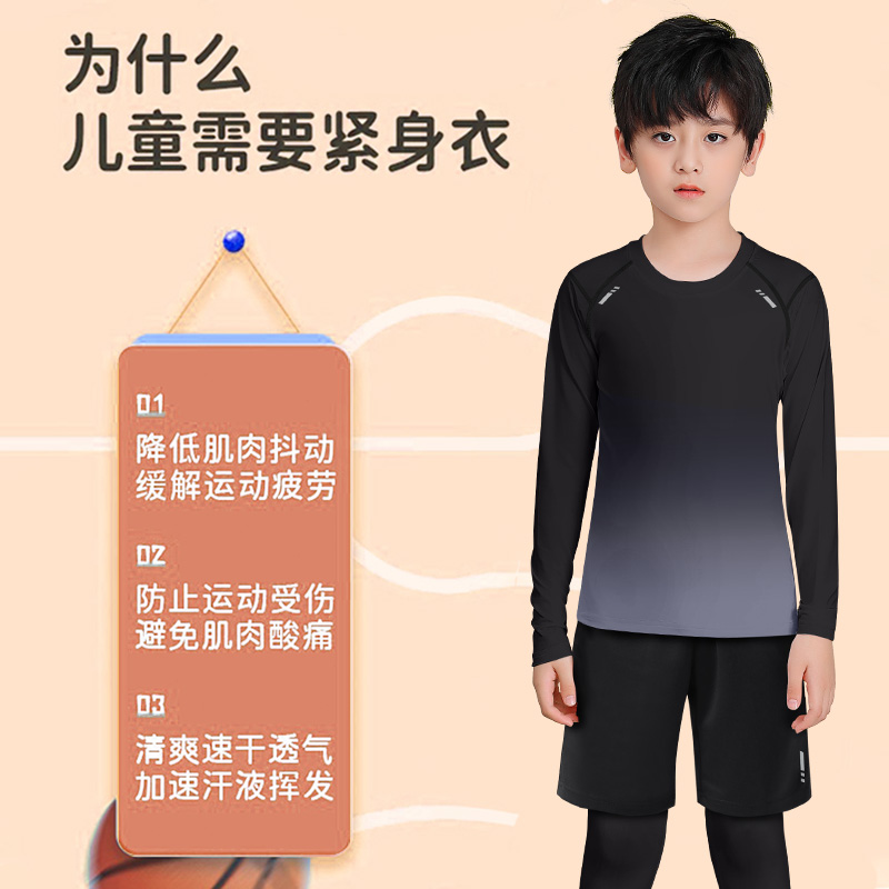 儿童速干运动套装秋季篮球训练服男童紧身衣打底男童跑步足球体能