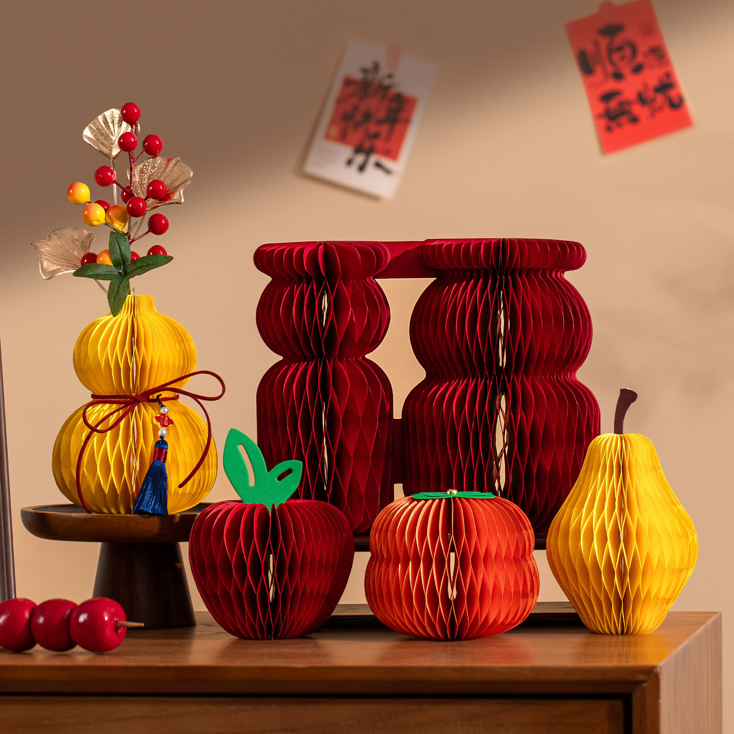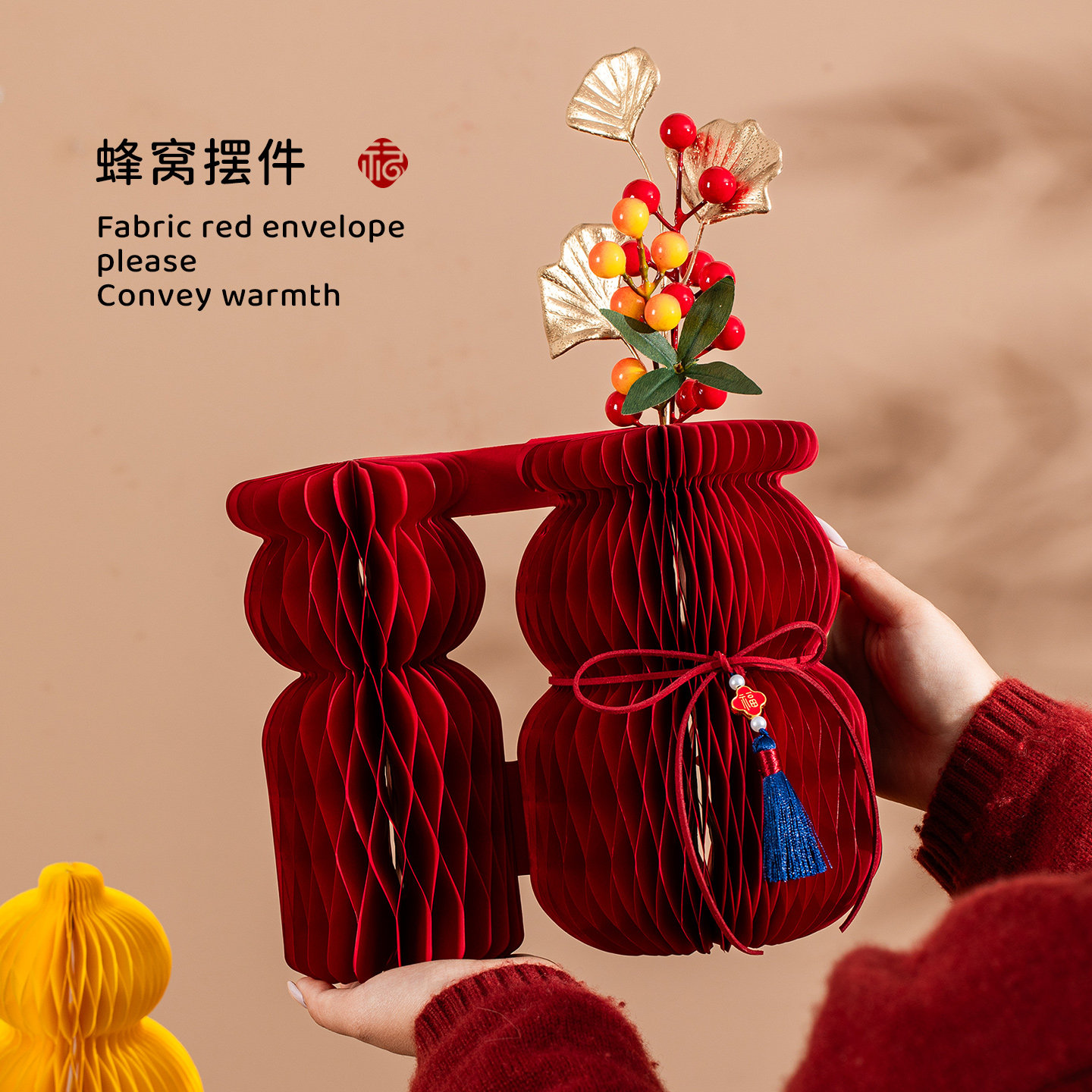 过年蜂窝花瓶创意摆件2026新款新年装饰品氛围橱窗高级感场景布置