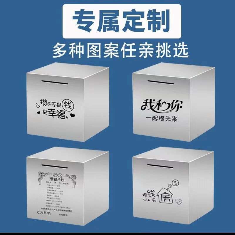 跨境款不锈钢存钱罐只进不出储蓄罐礼品男孩女孩儿童存钱箱大人用