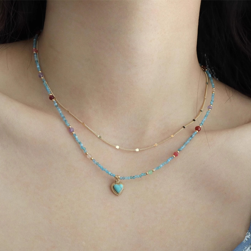 绿松石爱心吊坠项链配饰女夏季轻奢小众锁骨链高级感串珠颈链饰品