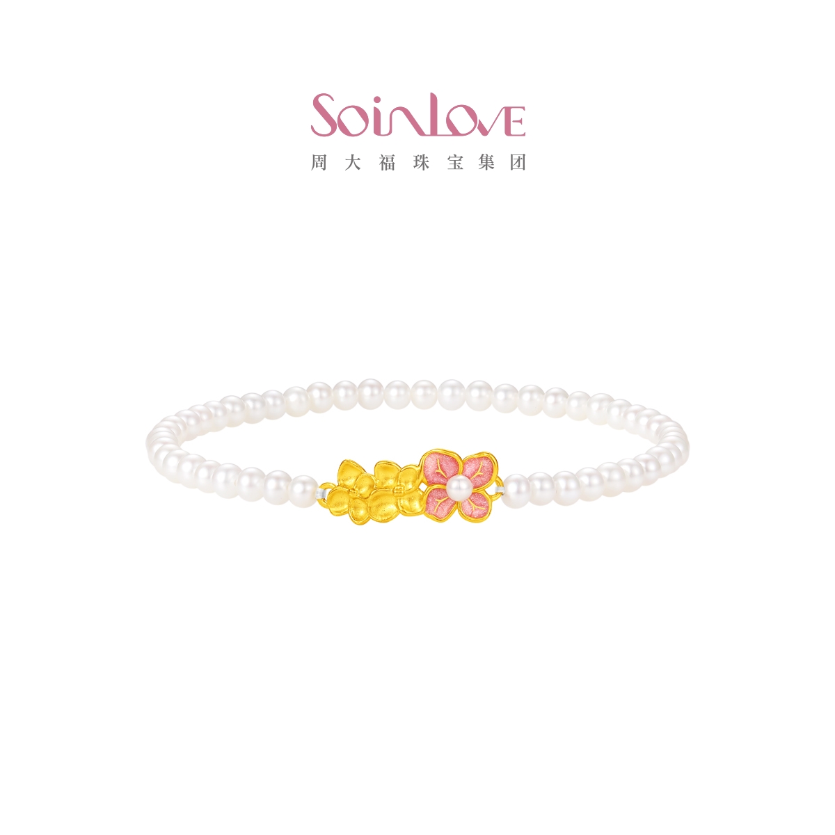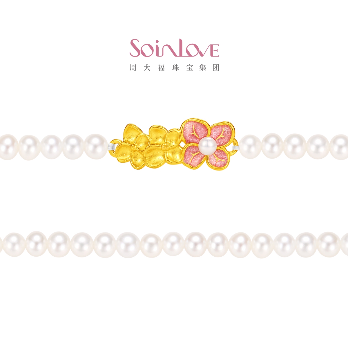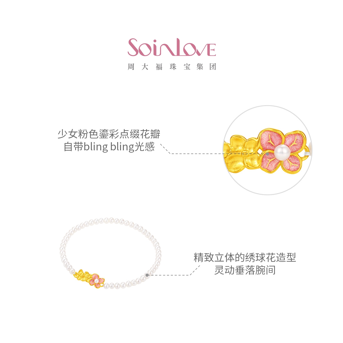 周大福SOINLOVE宝藏女孩无尽夏绣球花黄金珍珠手链圣诞礼物