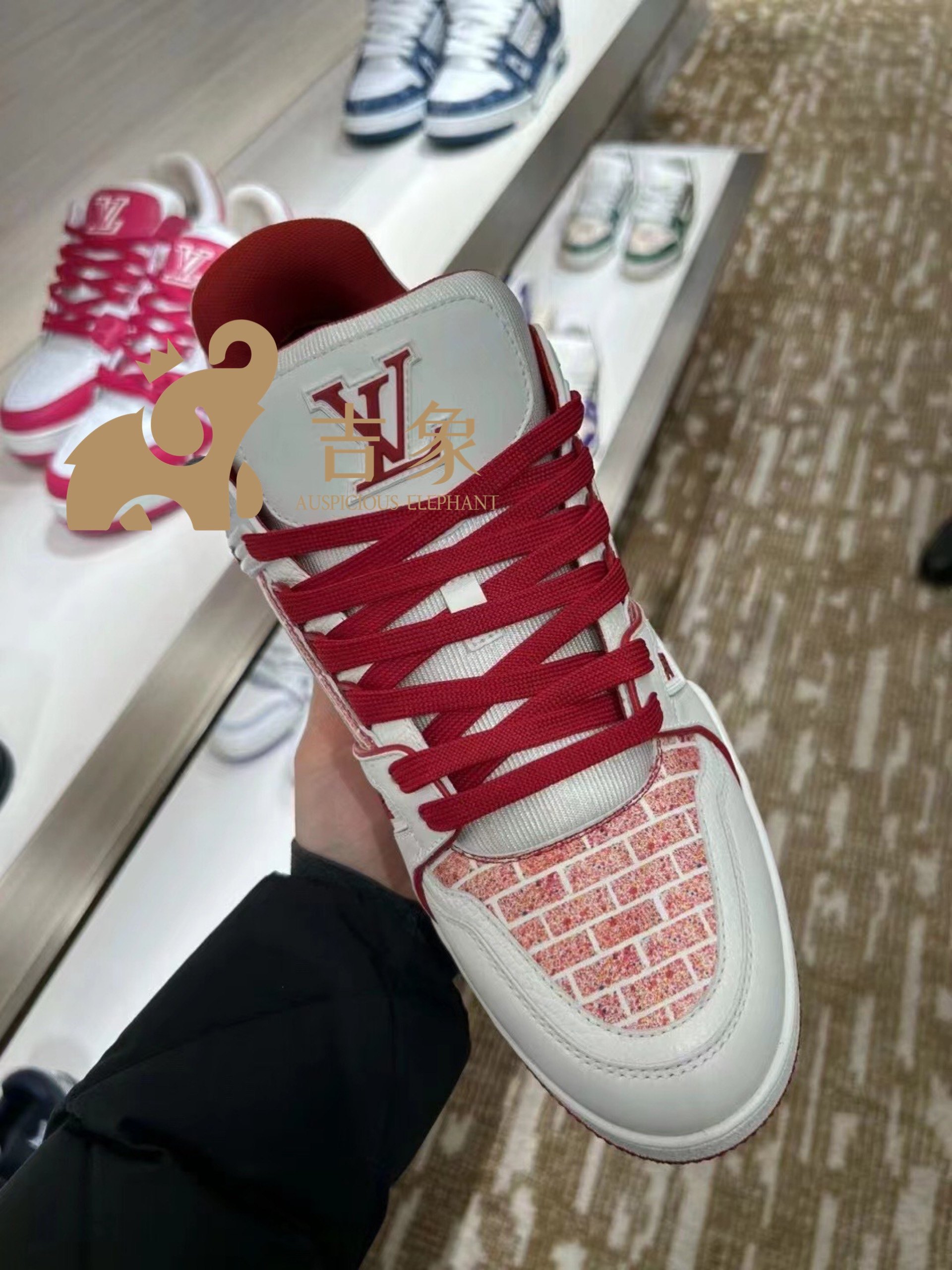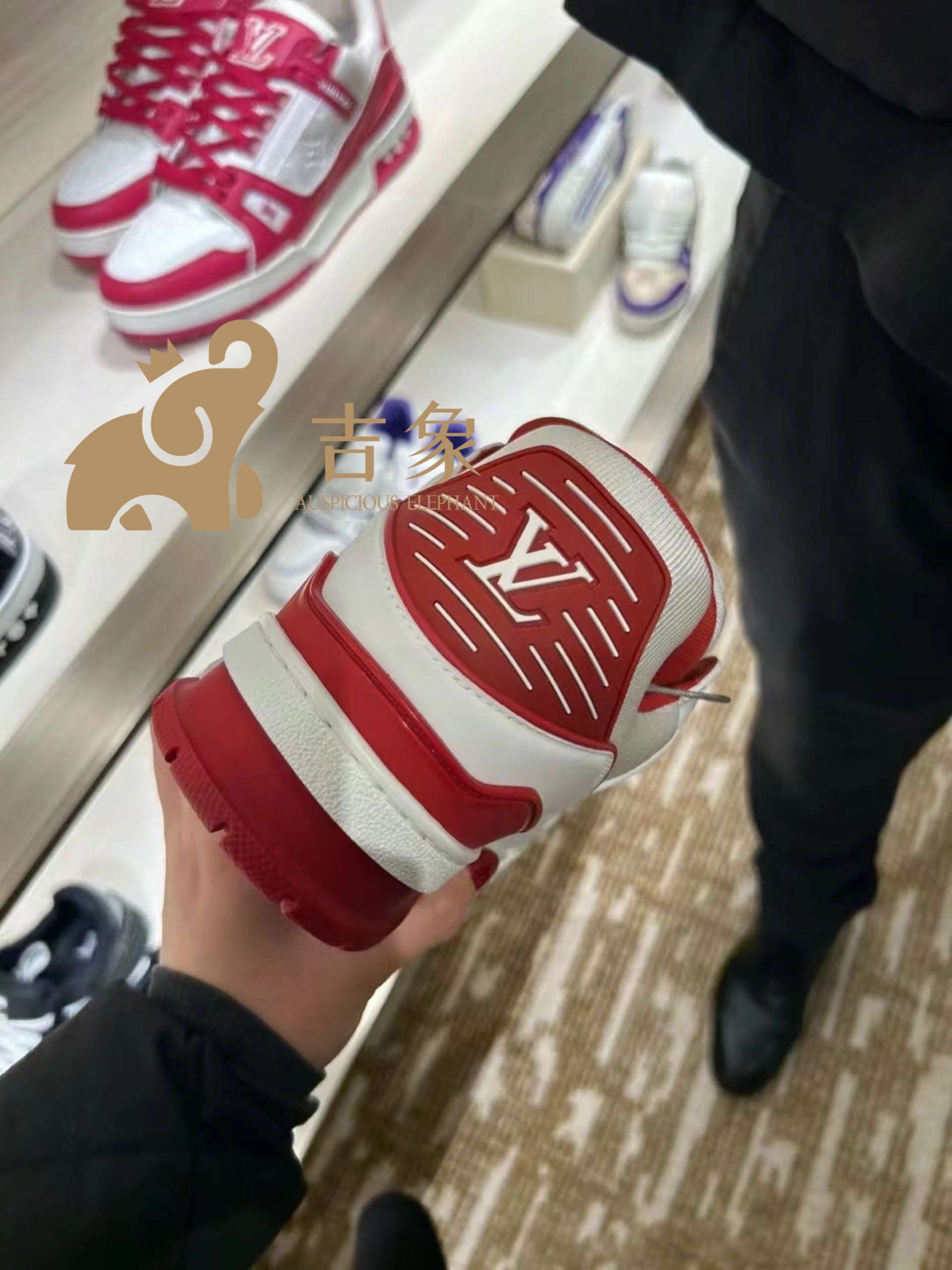 Lv路易威登2023新款男鞋限定款Trainer红白系带运动鞋板鞋1A9V5M
