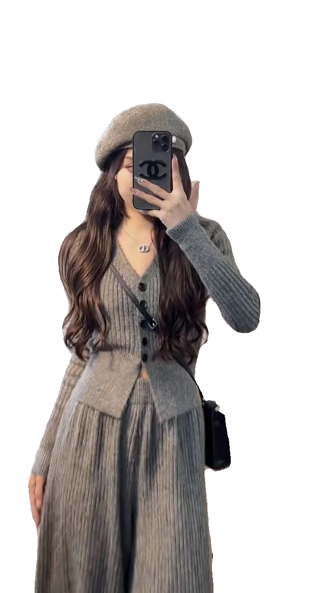 欧货2025春秋新款韩版V领针织衫休闲时尚套装女毛衣阔腿裤两件套