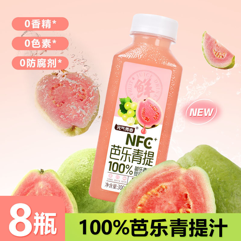 芭乐青提复合果汁300ML*8瓶鲜果榨取爽心果汁饮料0添加蔗糖家庭装