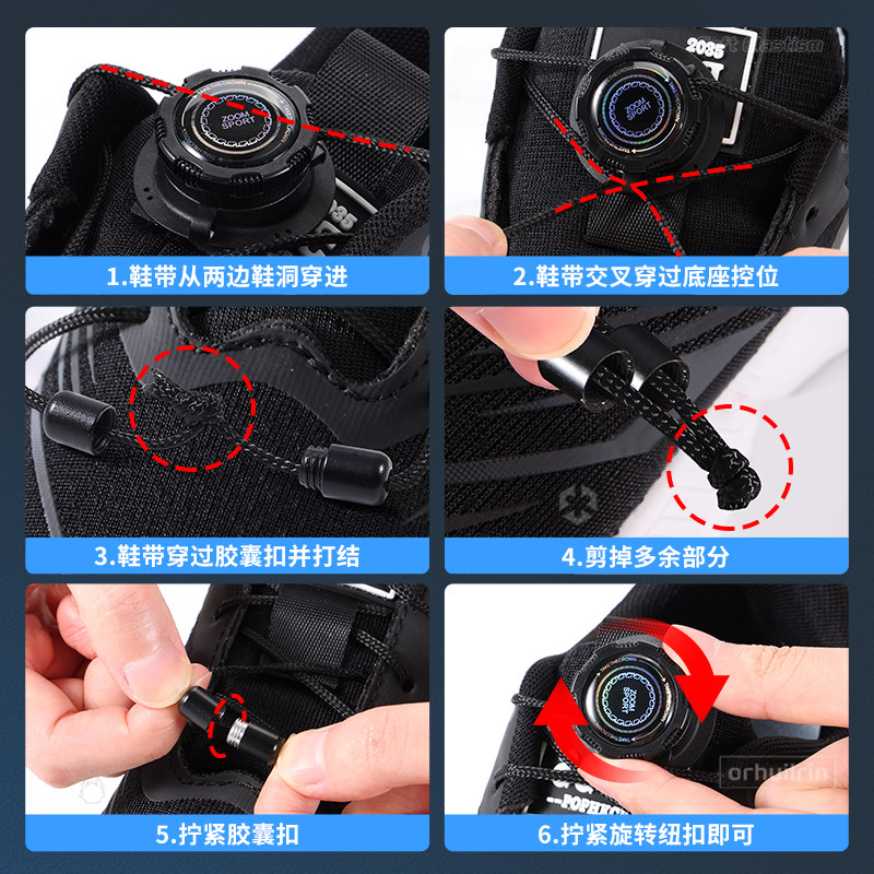 适用于乔丹儿童鞋垫懒人自动扣旋转纽扣可替换黑色免绑免系男女童