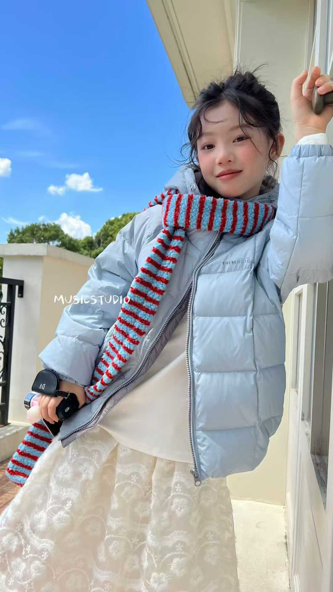 女童羽绒服25秋冬季新款儿童连帽三防外套男童90白鸭绒校服神品