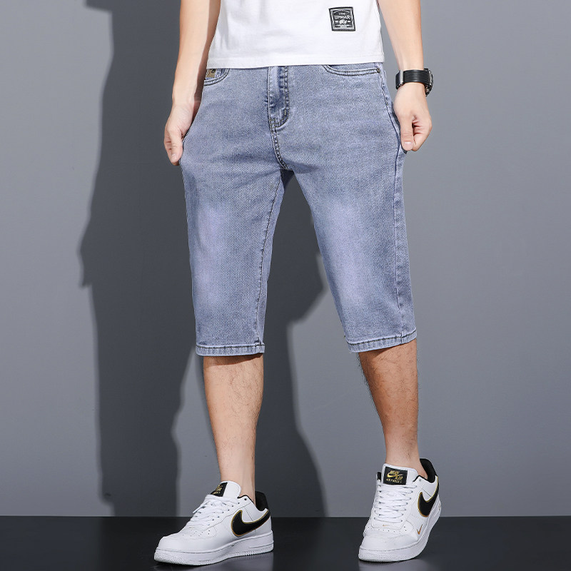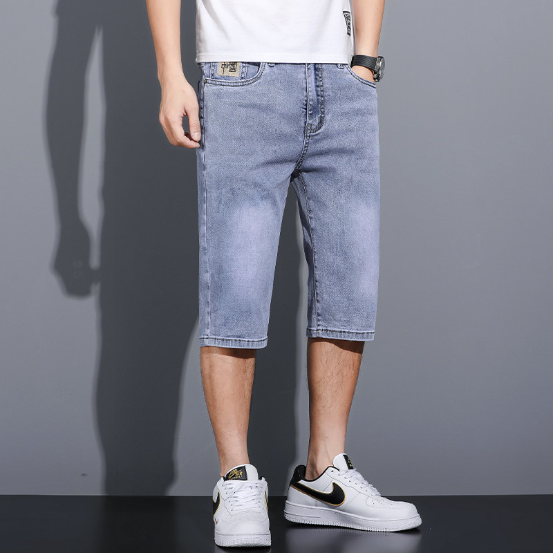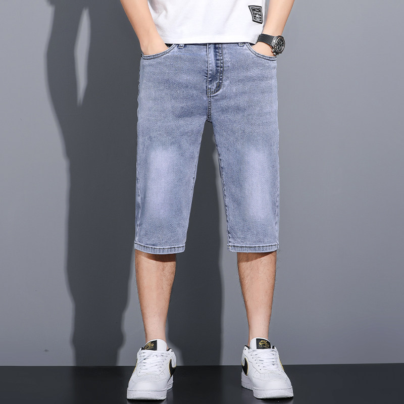 天丝七分牛仔短裤男士夏季超薄款宽松直筒弹力7分裤休闲中裤子男