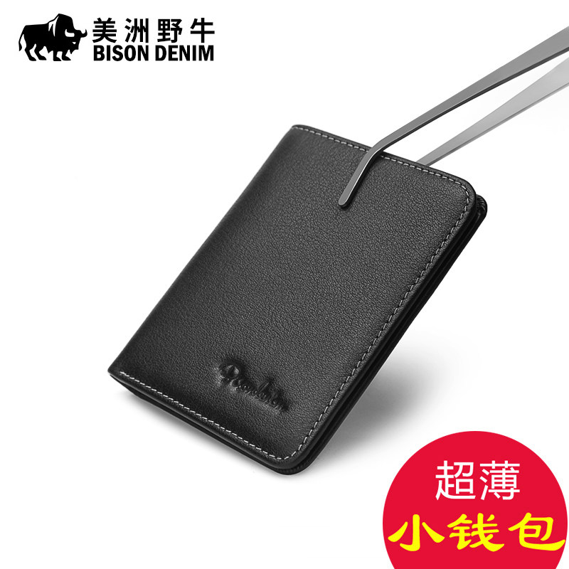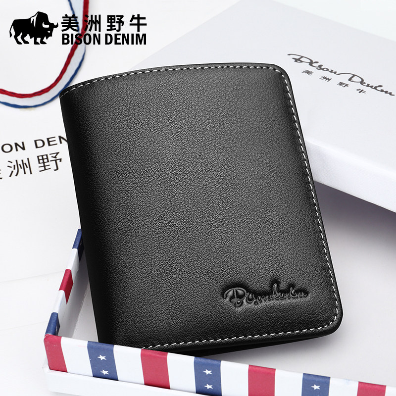 美洲野牛男短款真皮正品竖款皮夹头层牛皮钱夹软皮超薄钱包潮