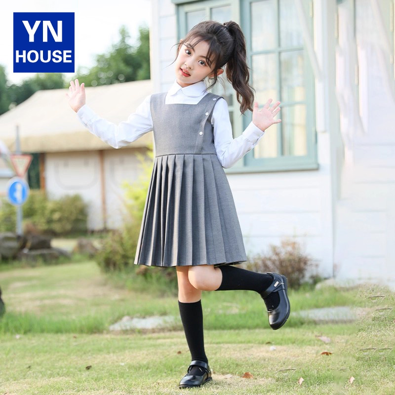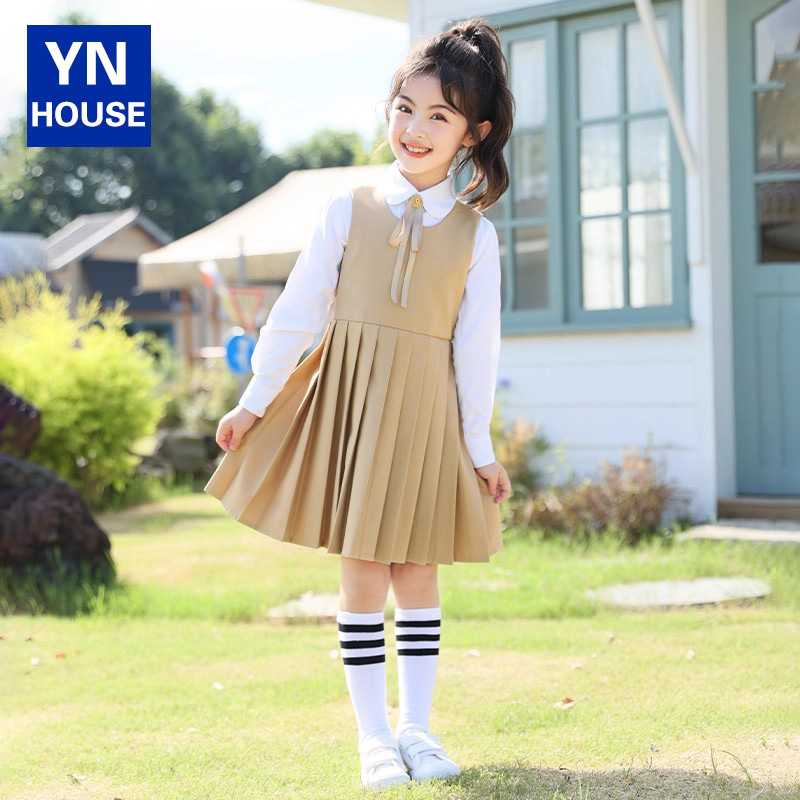 儿童学院风背心连衣裙方领百褶裙女童背带裙套装中大童合唱演出服