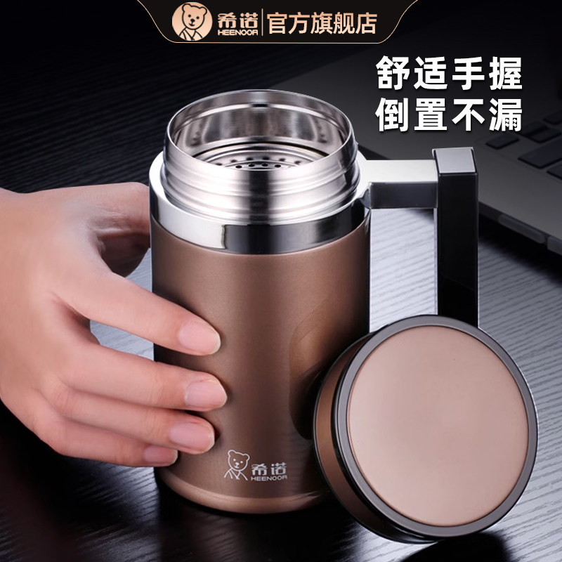 希诺保温杯大容量高档商务不锈钢泡茶杯带手柄把手水杯办公室杯子