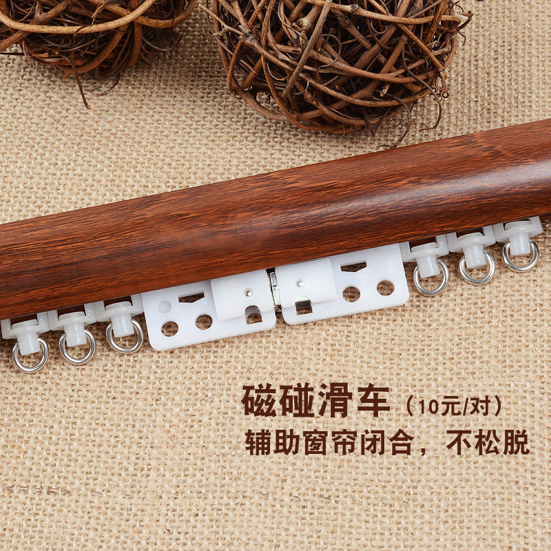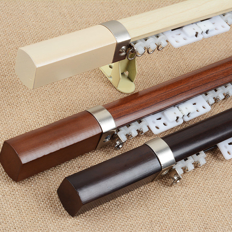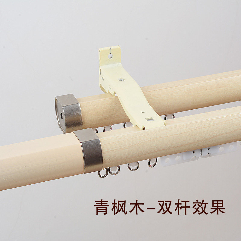 法瑞尔实木方形头罗马杆滑轮窗帘杆加厚铝合金轨道静音单杆双杆