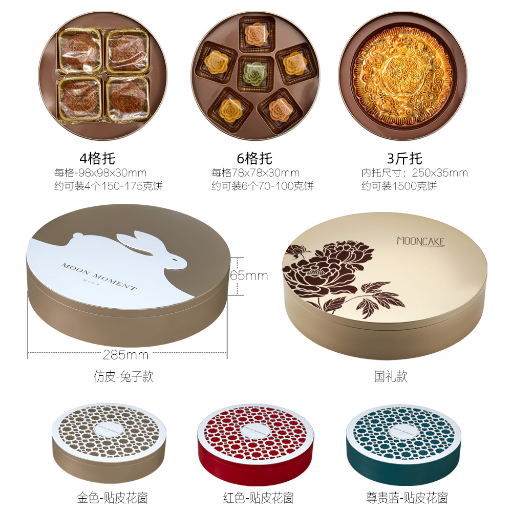 星悦铁盒贴皮兔子花窗中秋月饼礼品包装盒酒店盒子3斤装6粒装定制